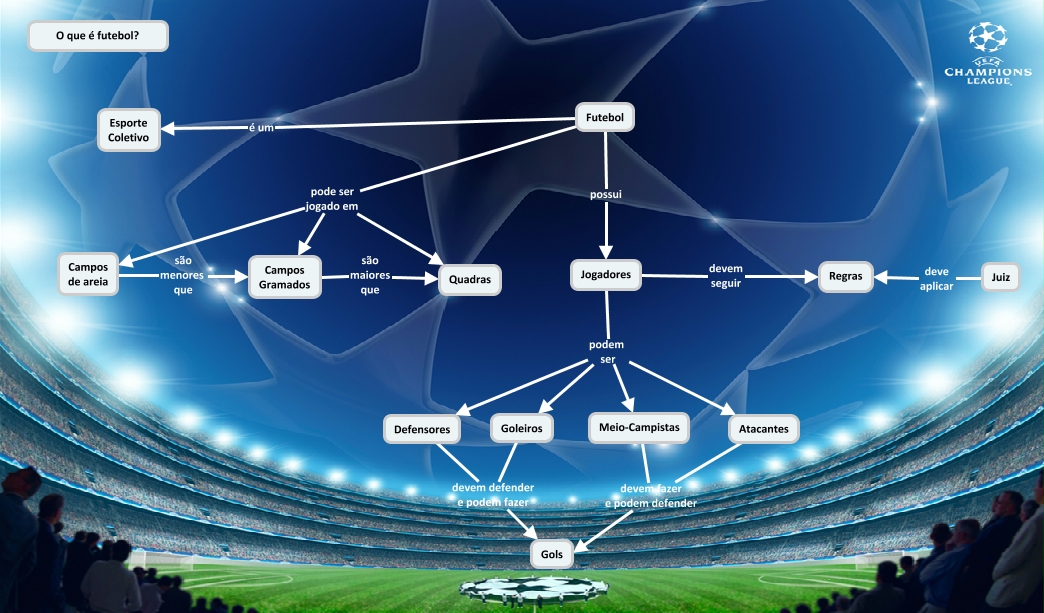 Esse mapa conceitual, produzido no IHMC CmapTools, tem a informação relacionada a: Aline e Bruna 2°A turma A, Campos Gramados são maiores que Quadras, Goleiros devem defender e podem fazer Gols, Juiz deve aplicar Regras, Futebol é um Esporte Coletivo, Futebol possui Jogadores, Futebol pode ser jogado em Quadras, Jogadores podem ser Defensores, Futebol pode ser jogado em Campos Gramados, Jogadores devem seguir Regras, Meio-Campistas devem fazer e podem defender Gols, Atacantes devem fazer e podem defender Gols, Jogadores podem ser Goleiros, Jogadores podem ser Atacantes, Campos de areia são menores que Campos Gramados, Defensores devem defender e podem fazer Gols, Futebol pode ser jogado em Campos de areia, Jogadores podem ser Meio-Campistas