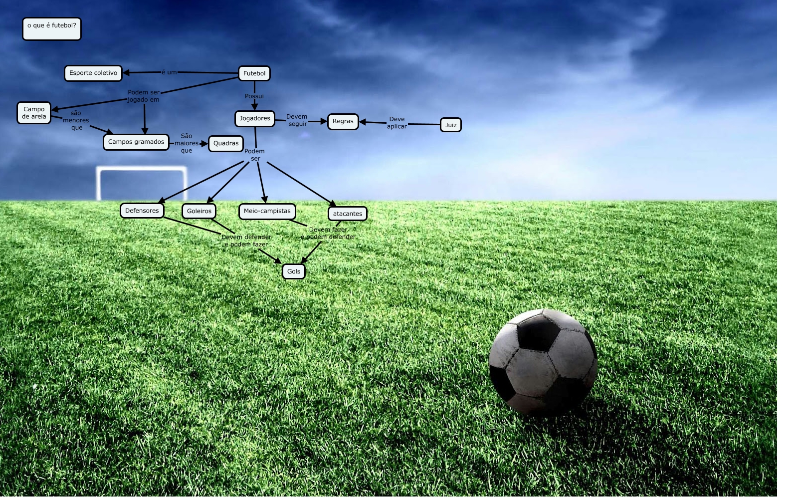 Esse mapa conceitual, produzido no IHMC CmapTools, tem a informação relacionada a: Henrique Acioli, Jogadores Podem ser atacantes, Jogadores Podem ser Goleiros, Campo de areia são menores que Campos gramados, Jogadores Podem ser Meio-campistas, Jogadores Podem ser Defensores, Campos gramados São maiores que Quadras, Futebol é um Esporte coletivo, Juiz Deve aplicar Regras, Futebol Podem ser jogado em ????, Futebol Podem ser jogado em Campo de areia, Jogadores Devem seguir Regras, Defensores Devem defender e podem fazer Gols, atacantes Devem fazer e podem defender Gols, Goleiros Devem defender e podem fazer Gols, Futebol Possui Jogadores, Meio-campistas Devem fazer e podem defender Gols