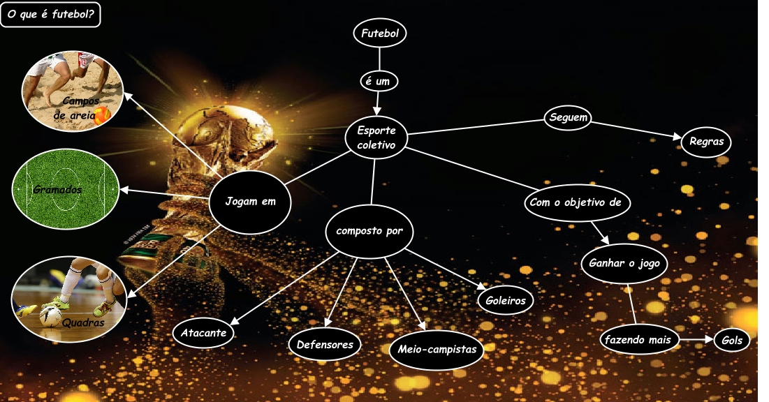 Esse mapa conceitual, produzido no IHMC CmapTools, tem a informação relacionada a: o que é futebol Bruna Barbosa 1BTA, Esporte coletivo composto por Meio-campistas, Esporte coletivo Jogam em Gramados, Ganhar o jogo fazendo mais Gols, Esporte coletivo composto por Goleiros, Esporte coletivo composto por Defensores, Esporte coletivo Jogam em Campos de areia, Esporte coletivo Com o objetivo de Ganhar o jogo, Futebol é um Esporte coletivo, Esporte coletivo composto por Atacante, Esporte coletivo Jogam em Quadras, Esporte coletivo Seguem Regras