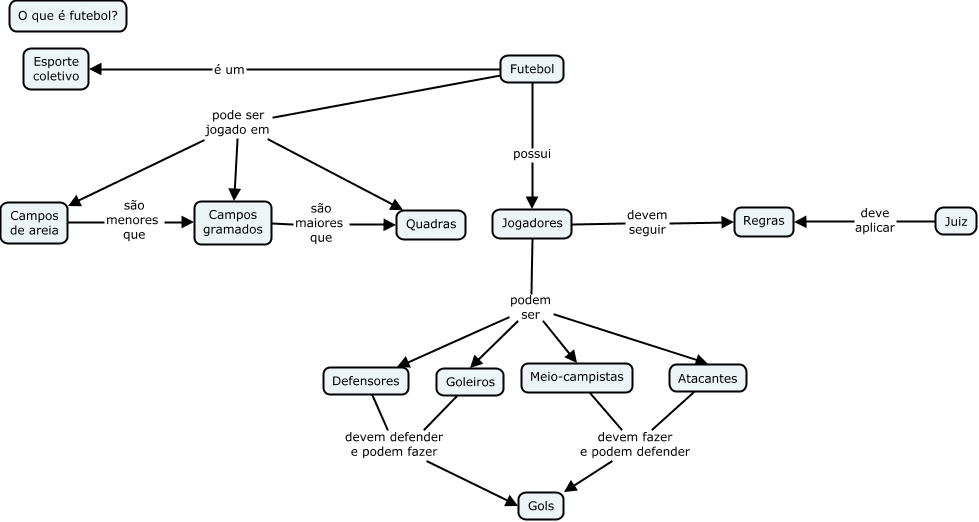 Esse mapa conceitual, produzido no IHMC CmapTools, tem a informação relacionada a: O que é futebol Amalia dos Santos Silva 1B TA, Juiz deve aplicar Regras, Futebol pode ser jogado em Campos gramados, Jogadores podem ser Atacantes, Defensores devem defender e podem fazer Gols, Jogadores podem ser Meio-campistas, Futebol possui Jogadores, Jogadores podem ser Goleiros, Goleiros devem defender e podem fazer Gols, Futebol é um Esporte coletivo, Futebol pode ser jogado em Quadras, Jogadores devem seguir Regras, Meio-campistas devem fazer e podem defender Gols, Jogadores podem ser Defensores, Futebol pode ser jogado em Campos de areia, Campos de areia são menores que Campos gramados, Atacantes devem fazer e podem defender Gols, Campos gramados são maiores que Quadras
