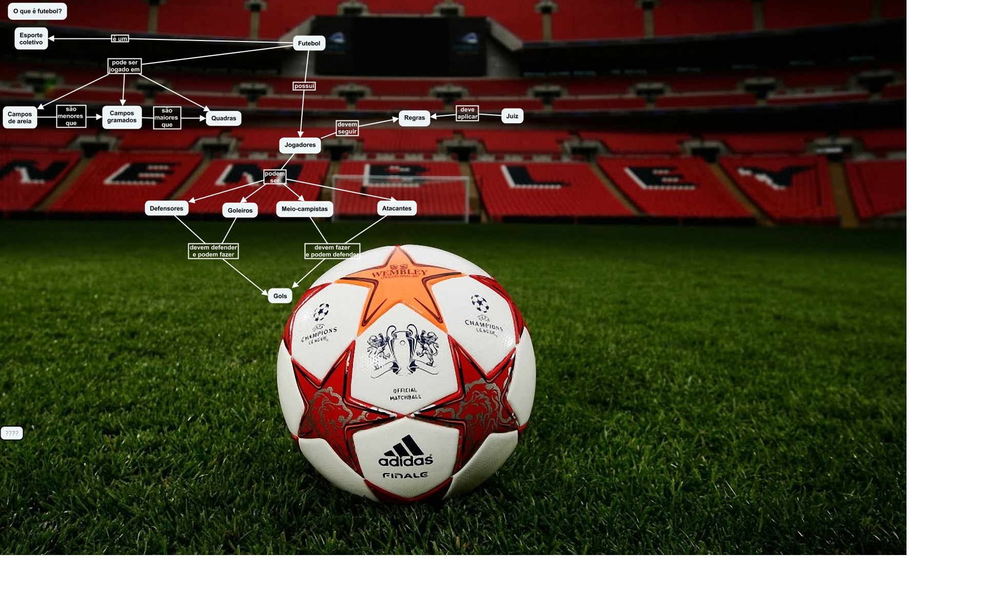 Esse mapa conceitual, produzido no IHMC CmapTools, tem a informação relacionada a: O que é futebol Luciano1b TA, Juiz deve aplicar Regras, Futebol pode ser jogado em Campos gramados, Jogadores podem ser Atacantes, Defensores devem defender e podem fazer Gols, Jogadores podem ser Meio-campistas, Futebol possui Jogadores, Jogadores podem ser Goleiros, Goleiros devem defender e podem fazer Gols, Futebol é um Esporte coletivo, Futebol pode ser jogado em Quadras, Jogadores devem seguir Regras, Meio-campistas devem fazer e podem defender Gols, Jogadores podem ser Defensores, Futebol pode ser jogado em Campos de areia, Campos de areia são menores que Campos gramados, Atacantes devem fazer e podem defender Gols, Campos gramados são maiores que Quadras
