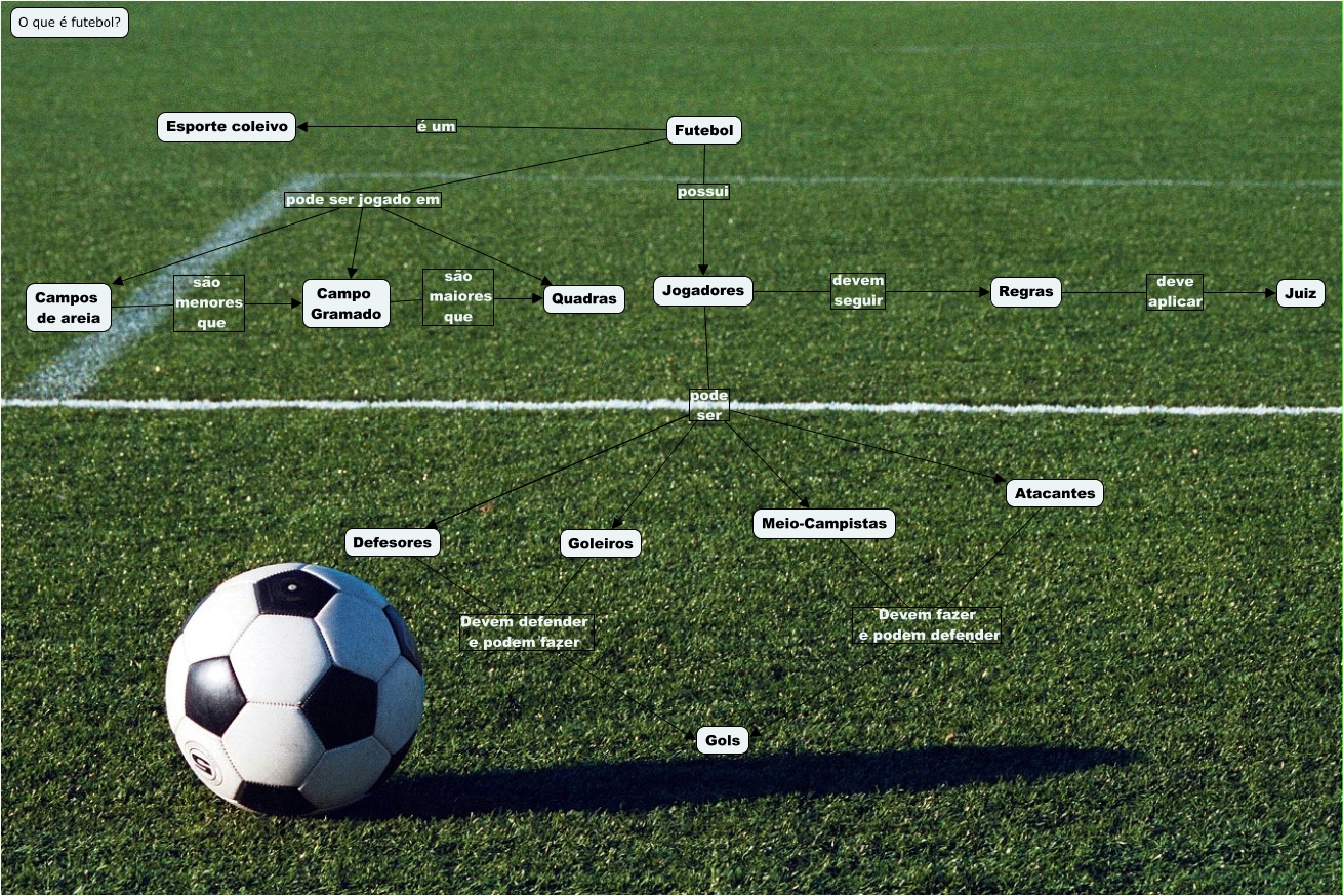 Esse mapa conceitual, produzido no IHMC CmapTools, tem a informação relacionada a: o que é futebol Pedro 1B, Defesores Devem defender e podem fazer Gols, Meio-Campistas Devem fazer e podem defender Gols, Futebol pode ser jogado em Campo Gramado, Futebol pode ser jogado em Campos de areia, Atacantes Devem fazer e podem defender Gols, Campo Gramado são maiores que Quadras, Regras deve aplicar Juiz, Goleiros Devem defender e podem fazer Gols, Campos de areia são menores que Campo Gramado, Jogadores pode ser Goleiros, Jogadores devem seguir Regras, Jogadores pode ser Atacantes, Jogadores pode ser Meio-Campistas, Jogadores pode ser Defesores, Jogadores pode ser Defesores, Futebol possui Jogadores, Futebol pode ser jogado em Quadras, Futebol é um Esporte coleivo