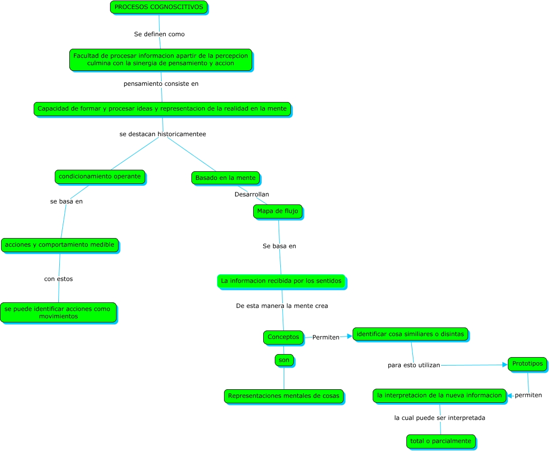 Este Cmap, tiene información relacionada con: procesos cognoscitivos, Prototipos permiten la interpretacion de la nueva informacion, condicionamiento operante se basa en acciones y comportamiento medible, Conceptos Permiten identificar cosa similiares o disintas, la interpretacion de la nueva informacion la cual puede ser interpretada total o parcialmente, acciones y comportamiento medible con estos se puede identificar acciones como movimientos, Conceptos ???? Representaciones mentales de cosas, Capacidad de formar y procesar ideas y representacion de la realidad en la mente se destacan historicamentee Basado en la mente, Facultad de procesar informacion apartir de la percepcion culmina con la sinergia de pensamiento y accion pensamiento consiste en Capacidad de formar y procesar ideas y representacion de la realidad en la mente, Capacidad de formar y procesar ideas y representacion de la realidad en la mente se destacan historicamentee condicionamiento operante, Mapa de flujo Se basa en La informacion recibida por los sentidos, PROCESOS COGNOSCITIVOS Se definen como Facultad de procesar informacion apartir de la percepcion culmina con la sinergia de pensamiento y accion, Basado en la mente Desarrollan Mapa de flujo, La informacion recibida por los sentidos De esta manera la mente crea Conceptos, identificar cosa similiares o disintas para esto utilizan Prototipos