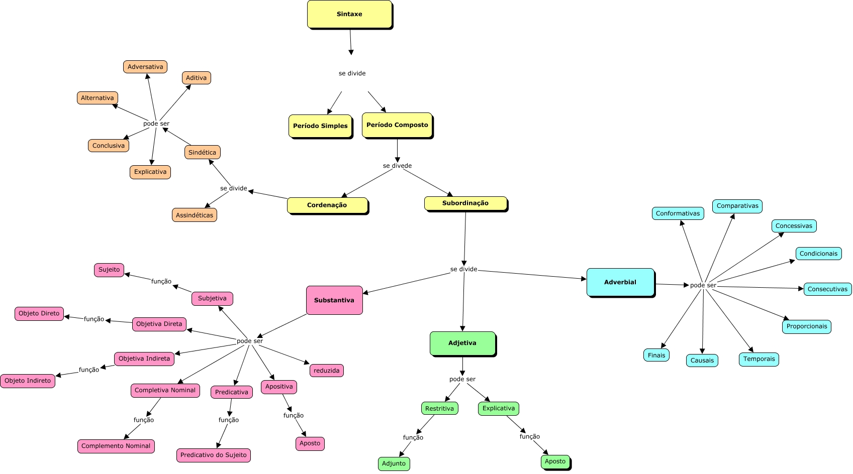 Esse mapa conceitual, produzido no IHMC CmapTools, tem a informação relacionada a: Gabriella e Paola 3B, Adverbial pode ser Consecutivas, Adjetiva pode ser Explicativa, Adverbial pode ser Temporais, Cordenação se divide Sindética, Adjetiva pode ser Restritiva, Substantiva pode ser Apositiva, Adverbial pode ser Comparativas, Restritiva função Adjunto, Substantiva pode ser Subjetiva, Sintaxe se divide Período Composto, Objetiva Indireta função Objeto Indireto, Completiva Nominal função Complemento Nominal, Adverbial pode ser Condicionais, Adverbial pode ser Proporcionais, Subordinação se divide Adverbial, Sindética pode ser Adversativa, Período Composto se divede Subordinação, Subordinação se divide Adjetiva, Adverbial pode ser Conformativas, Subjetiva função Sujeito