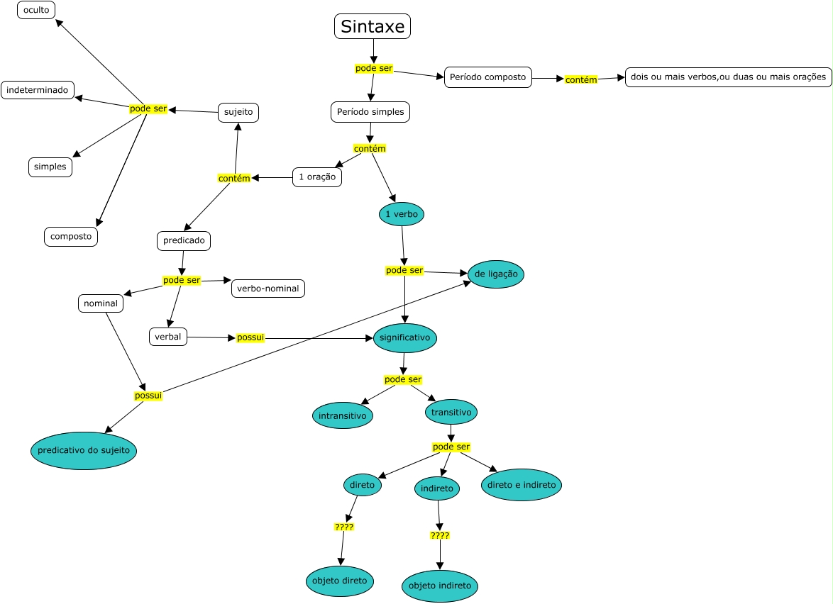 Esse mapa conceitual, produzido no IHMC CmapTools, tem a informação relacionada a: 9c dani e murilança, sujeito pode ser oculto, sujeito pode ser composto, 1 oração contém predicado, predicado pode ser nominal, significativo pode ser intransitivo, nominal possui de ligação, sujeito pode ser composto, 1 verbo pode ser significativo, significativo pode ser transitivo, direto ???? objeto direto, indireto ???? objeto indireto, Sintaxe pode ser Período simples, predicado pode ser verbo-nominal, 1 verbo pode ser de ligação, Período simples contém 1 oração, Período simples contém 1 verbo, verbal possui significativo, sujeito pode ser simples, 1 oração contém sujeito, sujeito pode ser indeterminado