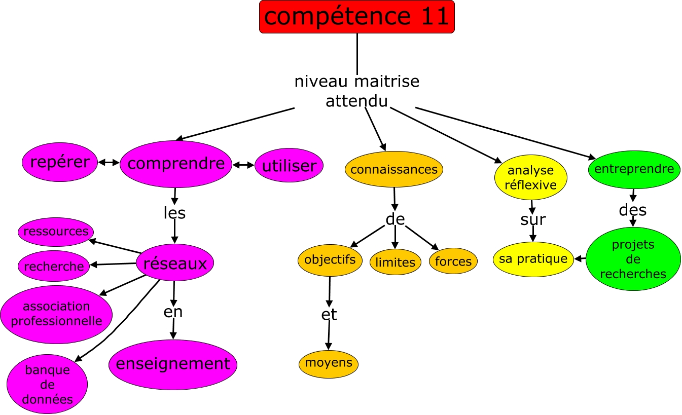 Cette carte de concepts créée avec IHMC CmapTools traite de: compétence 11, objectifs et moyens, réseaux banque de données, compétence 11 niveau maitrise attendu analyse réflexive, réseaux en enseignement, comprendre utiliser, réseaux association professionnelle, projets de recherches sa pratique, connaissances de objectifs, réseaux recherche, connaissances de forces, entreprendre des projets de recherches, compétence 11 niveau maitrise attendu connaissances, réseaux ressources, comprendre les réseaux, compétence 11 niveau maitrise attendu entreprendre, compétence 11 niveau maitrise attendu comprendre, comprendre repérer, connaissances de limites, analyse réflexive sur sa pratique