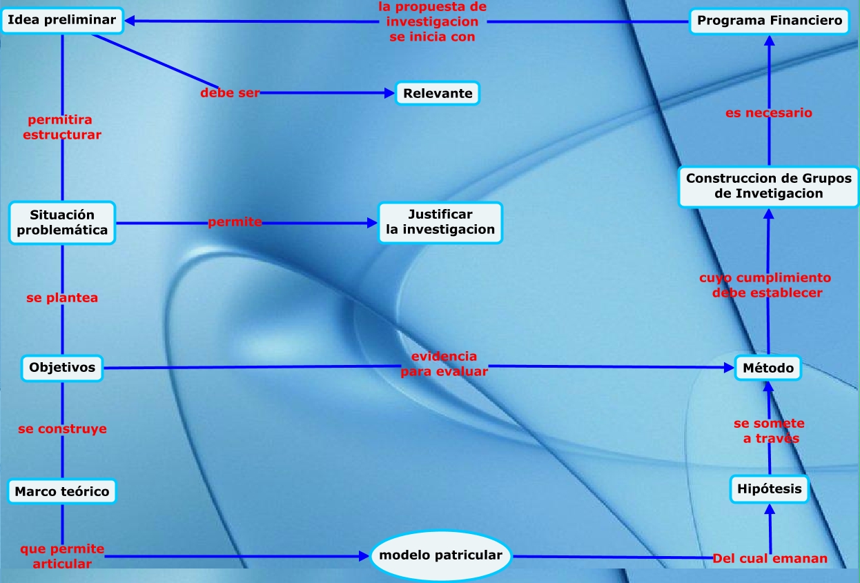 Este Cmap, tiene información relacionada con: Disenio-Experimental_2, Programa Financiero la propuesta de investigacion se inicia con Idea preliminar, Idea preliminar permitira estructurar Situación problemática, Idea preliminar debe ser Relevante, Marco teórico que permite articular modelo patricular, Objetivos se construye Marco teórico, Objetivos evidencia para evaluar Método, Situación problemática permite Justificar la investigacion, Construccion de Grupos de Invetigacion es necesario Programa Financiero, Situación problemática se plantea Objetivos, modelo patricular Del cual emanan Hipótesis, Método cuyo cumplimiento debe establecer Construccion de Grupos de Invetigacion, Hipótesis se somete a través Método