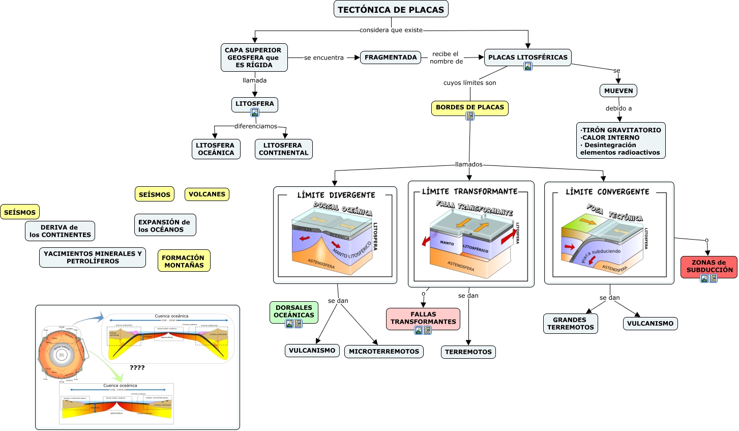Este Cmap, tiene información relacionada con: Copia de 2.3 Tectónica de placas, se dan MICROTERREMOTOS, CAPA SUPERIOR GEOSFERA que ES RÍGIDA se encuentra FRAGMENTADA, se dan GRANDES TERREMOTOS, TECTÓNICA DE PLACAS considera que existe CAPA SUPERIOR GEOSFERA que ES RÍGIDA, MUEVEN debido a ·TIRÓN GRAVITATORIO ·CALOR INTERNO · Desintegración elementos radioactivos, FRAGMENTADA recibe el nombre de PLACAS LITOSFÉRICAS, se dan VULCANISMO, se dan VULCANISMO, BORDES DE PLACAS llamados, o ZONAS de SUBDUCCIÓN, LITOSFERA diferenciamos LITOSFERA CONTINENTAL, CAPA SUPERIOR GEOSFERA que ES RÍGIDA llamada LITOSFERA, TECTÓNICA DE PLACAS considera que existe PLACAS LITOSFÉRICAS, LITOSFERA diferenciamos LITOSFERA OCEÁNICA, PLACAS LITOSFÉRICAS se MUEVEN, BORDES DE PLACAS llamados -, - o FALLAS TRANSFORMANTES, BORDES DE PLACAS llamados, PLACAS LITOSFÉRICAS cuyos límites son BORDES DE PLACAS, - se dan TERREMOTOS