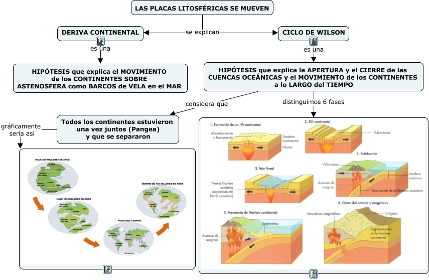 Este Cmap, tiene información relacionada con: 2.08 Deriva continental, Todos los continentes estuvieron una vez juntos (Pangea) y que se separaron gráficamente sería así, DERIVA CONTINENTAL es una HIPÓTESIS que explica el MOVIMIENTO de los CONTINENTES SOBRE ASTENOSFERA como BARCOS de VELA en el MAR, HIPÓTESIS que explica la APERTURA y el CIERRE de las CUENCAS OCEÁNICAS y el MOVIMIENTO de los CONTINENTES a lo LARGO del TIEMPO considera que Todos los continentes estuvieron una vez juntos (Pangea) y que se separaron, HIPÓTESIS que explica la APERTURA y el CIERRE de las CUENCAS OCEÁNICAS y el MOVIMIENTO de los CONTINENTES a lo LARGO del TIEMPO distinguimos 6 fases, CICLO DE WILSON es una HIPÓTESIS que explica la APERTURA y el CIERRE de las CUENCAS OCEÁNICAS y el MOVIMIENTO de los CONTINENTES a lo LARGO del TIEMPO, LAS PLACAS LITOSFÉRICAS SE MUEVEN se explican DERIVA CONTINENTAL, LAS PLACAS LITOSFÉRICAS SE MUEVEN se explican CICLO DE WILSON