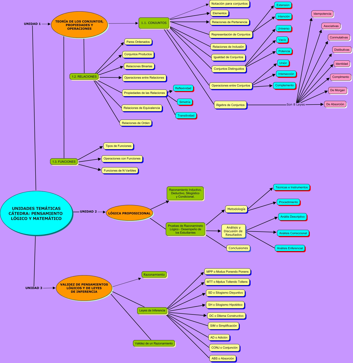 Este Cmap, tiene información relacionada con: PENSAMIENTO LÓGICO, Álgebra de Conjuntos Son 8 Leyes Idempotencia, TEORÍA DE LOS CONJUNTOS, PROPIEDADES Y OPERACIONES C 1.3. FUNCIONES, Álgebra de Conjuntos Son 8 Leyes Complmento, Metodología p Procedimiento, Álgebra de Conjuntos Son 8 Leyes Conmutativas, 1.2. RELACIONES ???? Operaciones entre Relaciones, 1.2. RELACIONES ???? Propiedades de las Relaciones, Pruebas de Razonamineto Lógico - Desempeño de los Estudiantes c Conclusiones, 1.1. CONJUNTOS x Relaciones de Inclusión, Leyes de Inferencia ???? CONJ o Conjunción, 1.2. RELACIONES ???? Relaciones Binarias, 1.1. CONJUNTOS x Notación para conjuntos, Leyes de Inferencia ???? AD o Adición, UNIDADES TEMÁTICAS CÁTEDRA: PENSAMIENTO LÓGICO Y MATEMÁTICO UNIDAD 1 TEORÍA DE LOS CONJUNTOS, PROPIEDADES Y OPERACIONES, LÓGICA PROPOSICIONAL ???? Pruebas de Razonamineto Lógico - Desempeño de los Estudiantes, Pruebas de Razonamineto Lógico - Desempeño de los Estudiantes c Metodología, Leyes de Inferencia ???? DC o Dilema Constructivo, Propiedades de las Relaciones ???? Reflexividad, Operaciones entre Conjuntos ???? Intersección, Álgebra de Conjuntos Son 8 Leyes Distibutivas