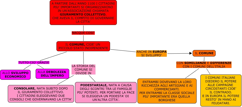 Questa Cmap, creata con IHMC CmapTools, contiene informazioni relative a: LA NASCITA DEI COMUNI, IL COMUNE, CIOE' UN PICCOLO STATO INDIPENDENTE TUTTO CIO' GRAZIE ALLA DEBOLEZZA DELL'IMPERO, IL COMUNE CON SOMILIANZE E DIFFERENZE CON I COMUNI DELL'ITALIA ENTRAMBI DOVEVANO LA LORO RICCHEZZA AGLI ARTIGIANI E AI COMMERCIANTI. PER ENTRAMBI LA CLASSE SOCIALE PIU' IMPORTANTE ERA QUELLA BORGHESE, A PARTIRE DALL'ANNO 1100 I CITTADINI PIU' IMPORTANTI SI ORGANIZZARONO IN UN'ASSOCIAZIONE CHIAMATA GIURAMENTO COLLETTIVO, CHE AVEVA IL COMPITO DI GOVERNARE LA CITTA' NACQUE COSI' IL COMUNE, CIOE' UN PICCOLO STATO INDIPENDENTE, IL COMUNE CON SOMILIANZE E DIFFERENZE CON I COMUNI DELL'ITALIA I COMUNI ITALIANI DIEDERO IL POTERE ALLE CAMPAGNE CIRCOSTANTI CIOE' IL CONTRADO. E IN EUROPA IL POTERE RESTO' IN MANO AI FEUDATARI., IL COMUNE, CIOE' UN PICCOLO STATO INDIPENDENTE TUTTO CIO' GRAZIE ALLO SVILUPPO ECONOMICO, IL COMUNE, CIOE' UN PICCOLO STATO INDIPENDENTE LA STORIA DEL COMUNE SI DIVIDE IN PODESTARIALE, NATA A CAUSA DEGLI SCONTRI TRA LE FAMIGLIE PIU' POTENTI. PER PORTARE LA PACE SI ELEGGEVA UN PODESTA' DI UN'ALTRA CITTA'., IL COMUNE, CIOE' UN PICCOLO STATO INDIPENDENTE LA STORIA DEL COMUNE SI DIVIDE IN CONSOLARE, NATA SUBITO DOPO IL GIURAMENTO COLLETTIVO. I CITTADINI ELEGGEVANO DUE CONSOLI CHE GOVERNAVANO LA CITTA', IL COMUNE, CIOE' UN PICCOLO STATO INDIPENDENTE ANCHE IN EUROPA SI SVILUPPO' IL COMUNE