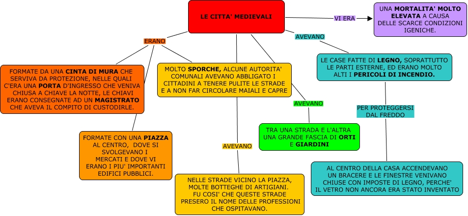 Questa Cmap, creata con IHMC CmapTools, contiene informazioni relative a: L'ADORATA SOCIETA', LE CITTA' MEDIEVALI AVEVANO LE CASE FATTE DI LEGNO, SOPRATTUTTO LE PARTI ESTERNE, ED ERANO MOLTO ALTI I PERICOLI DI INCENDIO., LE CITTA' MEDIEVALI ERANO FORMATE DA UNA CINTA DI MURA CHE SERVIVA DA PROTEZIONE, NELLE QUALI C'ERA UNA PORTA D'INGRESSO CHE VENIVA CHIUSA A CHIAVE LA NOTTE, LE CHIAVI ERANO CONSEGNATE AD UN MAGISTRATO CHE AVEVA IL COMPITO DI CUSTODIRLE., LE CITTA' MEDIEVALI ERANO FORMATE CON UNA PIAZZA AL CENTRO, DOVE SI SVOLGEVANO I MERCATI E DOVE VI ERANO I PIU' IMPORTANTI EDIFICI PUBBLICI., LE CITTA' MEDIEVALI VI ERA UNA MORTALITA' MOLTO ELEVATA A CAUSA DELLE SCARCE CONDIZIONI IGENICHE., LE CITTA' MEDIEVALI ERANO MOLTO SPORCHE, ALCUNE AUTORITA' COMUNALI AVEVANO ABBLIGATO I CITTADINI A TENERE PULITE LE STRADE E A NON FAR CIRCOLARE MAIALI E CAPRE, LE CITTA' MEDIEVALI AVEVANO NELLE STRADE VICINO LA PIAZZA, MOLTE BOTTEGHE DI ARTIGIANI. FU COSI' CHE QUESTE STRADE PRESERO IL NOME DELLE PROFESSIONI CHE OSPITAVANO., LE CASE FATTE DI LEGNO, SOPRATTUTTO LE PARTI ESTERNE, ED ERANO MOLTO ALTI I PERICOLI DI INCENDIO. PER PROTEGGERSI DAL FREDDO AL CENTRO DELLA CASA ACCENDEVANO UN BRACERE E LE FINESTRE VENIVANO CHIUSE CON IMPOSTE DI LEGNO, PERCHE' IL VETRO NON ANCORA ERA STATO INVENTATO, LE CITTA' MEDIEVALI AVEVANO TRA UNA STRADA E L'ALTRA UNA GRANDE FASCIA DI ORTI E GIARDINI