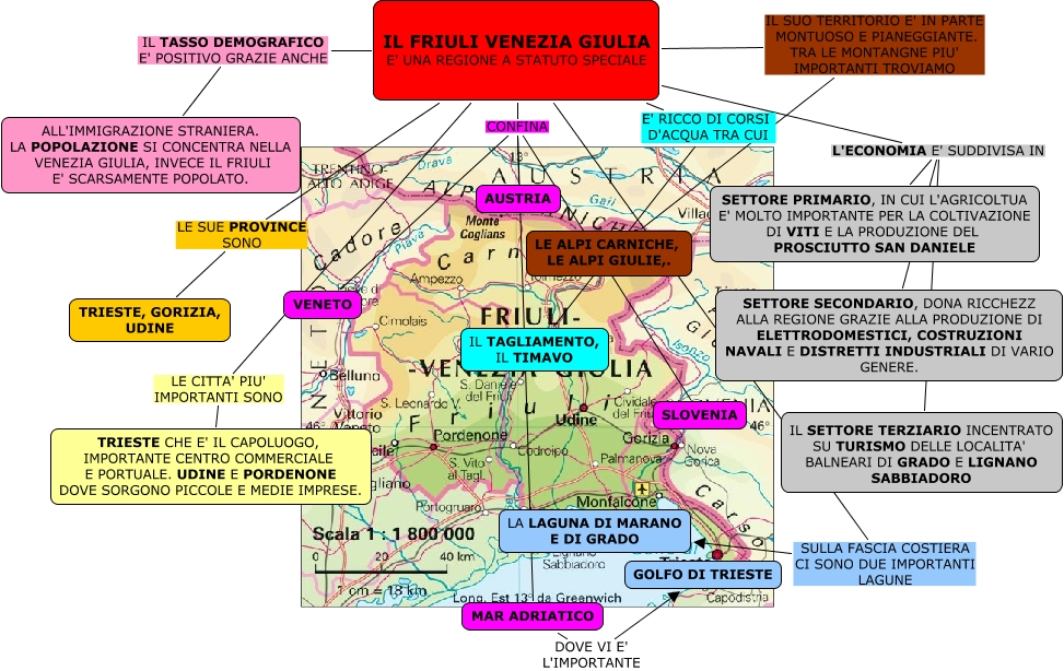 Questa Cmap, creata con IHMC CmapTools, contiene informazioni relative a: FRIULI VENEZIA GIULIA, IL FRIULI VENEZIA GIULIA E' UNA REGIONE A STATUTO SPECIALE IL TASSO DEMOGRAFICO E' POSITIVO GRAZIE ANCHE ALL'IMMIGRAZIONE STRANIERA. LA POPOLAZIONE SI CONCENTRA NELLA VENEZIA GIULIA, INVECE IL FRIULI E' SCARSAMENTE POPOLATO., IL FRIULI VENEZIA GIULIA E' UNA REGIONE A STATUTO SPECIALE CONFINA SLOVENIA, IL FRIULI VENEZIA GIULIA E' UNA REGIONE A STATUTO SPECIALE LE CITTA' PIU' IMPORTANTI SONO TRIESTE CHE E' IL CAPOLUOGO, IMPORTANTE CENTRO COMMERCIALE E PORTUALE. UDINE E PORDENONE DOVE SORGONO PICCOLE E MEDIE IMPRESE., IL FRIULI VENEZIA GIULIA E' UNA REGIONE A STATUTO SPECIALE SULLA FASCIA COSTIERA CI SONO DUE IMPORTANTI LAGUNE LA LAGUNA DI MARANO E DI GRADO, IL FRIULI VENEZIA GIULIA E' UNA REGIONE A STATUTO SPECIALE LE SUE PROVINCE SONO TRIESTE, GORIZIA, UDINE, IL FRIULI VENEZIA GIULIA E' UNA REGIONE A STATUTO SPECIALE CONFINA VENETO, IL FRIULI VENEZIA GIULIA E' UNA REGIONE A STATUTO SPECIALE L'ECONOMIA E' SUDDIVISA IN SETTORE PRIMARIO, IN CUI L'AGRICOLTUA E' MOLTO IMPORTANTE PER LA COLTIVAZIONE DI VITI E LA PRODUZIONE DEL PROSCIUTTO SAN DANIELE, IL FRIULI VENEZIA GIULIA E' UNA REGIONE A STATUTO SPECIALE CONFINA MAR ADRIATICO, IL FRIULI VENEZIA GIULIA E' UNA REGIONE A STATUTO SPECIALE L'ECONOMIA E' SUDDIVISA IN SETTORE SECONDARIO, DONA RICCHEZZ ALLA REGIONE GRAZIE ALLA PRODUZIONE DI ELETTRODOMESTICI, COSTRUZIONI NAVALI E DISTRETTI INDUSTRIALI DI VARIO GENERE., IL FRIULI VENEZIA GIULIA E' UNA REGIONE A STATUTO SPECIALE IL SUO TERRITORIO E' IN PARTE MONTUOSO E PIANEGGIANTE. TRA LE MONTANGNE PIU' IMPORTANTI TROVIAMO LE ALPI CARNICHE, LE ALPI GIULIE,., IL FRIULI VENEZIA GIULIA E' UNA REGIONE A STATUTO SPECIALE L'ECONOMIA E' SUDDIVISA IN IL SETTORE TERZIARIO INCENTRATO SU TURISMO DELLE LOCALITA' BALNEARI DI GRADO E LIGNANO SABBIADORO, MAR ADRIATICO DOVE VI E' L'IMPORTANTE GOLFO DI TRIESTE, IL FRIULI VENEZIA GIULIA E' UNA REGIONE A STATUTO SPECIALE CONFINA AUSTRIA, IL FRIULI VENEZIA GIULIA E' UNA REGIONE A STATUTO SPECIALE E' RICCO DI CORSI D'ACQUA TRA CUI IL TAGLIAMENTO, IL TIMAVO