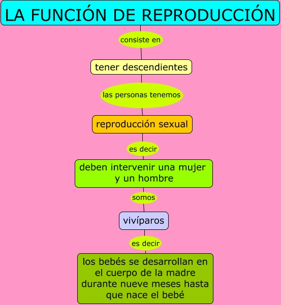 Este Cmap, tiene información relacionada con: La función de reproducción, deben intervenir una mujer y un hombre somos vivíparos, vivíparos es decir los bebés se desarrollan en el cuerpo de la madre durante nueve meses hasta que nace el bebé, tener descendientes las personas tenemos reproducción sexual, reproducción sexual es decir deben intervenir una mujer y un hombre, LA FUNCIÓN DE REPRODUCCIÓN consiste en tener descendientes