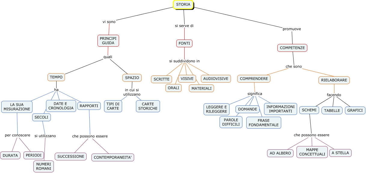 Questa Cmap, creata con IHMC CmapTools, contiene informazioni relative a: storia, FONTI si suddividono in VISIVE, STORIA vi sono PRINCIPI GUIDA, LA SUA MISURAZIONE per conoscere PERIODI, PRINCIPI GUIDA quali SPAZIO, LA SUA MISURAZIONE per conoscere DURATA, SCHEMI che possono essere MAPPE CONCETTUALI, PRINCIPI GUIDA quali TEMPO, FONTI si suddividono in ORALI, SECOLI si utilizzano NUMERI ROMANI, COMPRENDERE significa DOMANDE, FONTI si suddividono in SCRITTE, COMPRENDERE significa FRASE FONDAMENTALE, COMPRENDERE significa LEGGERE E RILEGGERE, RAPPORTI che possono essere CONTEMPORANEITA', TEMPO ha LA SUA MISURAZIONE, SCHEMI che possono essere AD ALBERO, RIELABORARE facendo GRAFICI, STORIA si serve di FONTI, RIELABORARE facendo TABELLE, TEMPO ha RAPPORTI