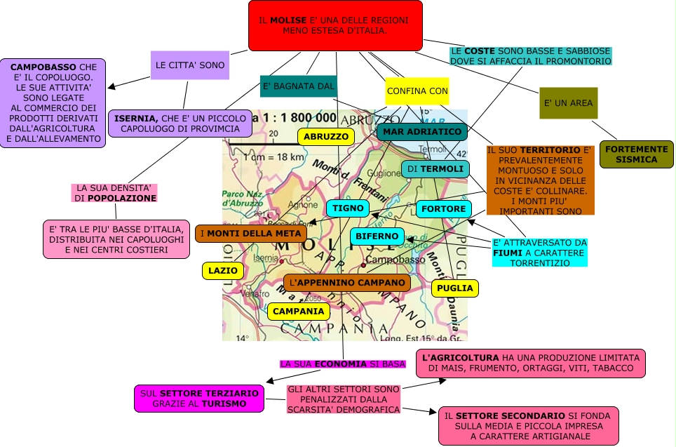 Questa Cmap, creata con IHMC CmapTools, contiene informazioni relative a: MOLISE, IL MOLISE E' UNA DELLE REGIONI MENO ESTESA D'ITALIA. E' ATTRAVERSATO DA FIUMI A CARATTERE TORRENTIZIO BIFERNO, IL MOLISE E' UNA DELLE REGIONI MENO ESTESA D'ITALIA. LE CITTA' SONO ISERNIA, CHE E' UN PICCOLO CAPOLUOGO DI PROVIMCIA, IL MOLISE E' UNA DELLE REGIONI MENO ESTESA D'ITALIA. CONFINA CON PUGLIA, IL MOLISE E' UNA DELLE REGIONI MENO ESTESA D'ITALIA. E' ATTRAVERSATO DA FIUMI A CARATTERE TORRENTIZIO FORTORE, IL MOLISE E' UNA DELLE REGIONI MENO ESTESA D'ITALIA. CONFINA CON LAZIO, IL MOLISE E' UNA DELLE REGIONI MENO ESTESA D'ITALIA. CONFINA CON ABRUZZO, IL MOLISE E' UNA DELLE REGIONI MENO ESTESA D'ITALIA. LA SUA DENSITA' DI POPOLAZIONE E' TRA LE PIU' BASSE D'ITALIA, DISTRIBUITA NEI CAPOLUOGHI E NEI CENTRI COSTIERI, IL MOLISE E' UNA DELLE REGIONI MENO ESTESA D'ITALIA. E' BAGNATA DAL MAR ADRIATICO, IL MOLISE E' UNA DELLE REGIONI MENO ESTESA D'ITALIA. CONFINA CON CAMPANIA, IL MOLISE E' UNA DELLE REGIONI MENO ESTESA D'ITALIA. LE CITTA' SONO CAMPOBASSO CHE E' IL COPOLUOGO. LE SUE ATTIVITA' SONO LEGATE AL COMMERCIO DEI PRODOTTI DERIVATI DALL'AGRICOLTURA E DALL'ALLEVAMENTO, IL MOLISE E' UNA DELLE REGIONI MENO ESTESA D'ITALIA. E' ATTRAVERSATO DA FIUMI A CARATTERE TORRENTIZIO TIGNO, SUL SETTORE TERZIARIO GRAZIE AL TURISMO GLI ALTRI SETTORI SONO PENALIZZATI DALLA SCARSITA' DEMOGRAFICA L'AGRICOLTURA HA UNA PRODUZIONE LIMITATA DI MAIS, FRUMENTO, ORTAGGI, VITI, TABACCO, SUL SETTORE TERZIARIO GRAZIE AL TURISMO GLI ALTRI SETTORI SONO PENALIZZATI DALLA SCARSITA' DEMOGRAFICA IL SETTORE SECONDARIO SI FONDA SULLA MEDIA E PICCOLA IMPRESA A CARATTERE ARTIGIANALE, IL MOLISE E' UNA DELLE REGIONI MENO ESTESA D'ITALIA. LA SUA ECONOMIA SI BASA SUL SETTORE TERZIARIO GRAZIE AL TURISMO, IL MOLISE E' UNA DELLE REGIONI MENO ESTESA D'ITALIA. LE COSTE SONO BASSE E SABBIOSE DOVE SI AFFACCIA IL PROMONTORIO DI TERMOLI, IL MOLISE E' UNA DELLE REGIONI MENO ESTESA D'ITALIA. IL SUO TERRITORIO E' PREVALENTEMENTE MONTUOSO E SOLO IN VICINANZA DELLE COSTE E' COLLINARE. I MONTI PIU' IMPORTANTI SONO I MONTI DELLA META, IL MOLISE E' UNA DELLE REGIONI MENO ESTESA D'ITALIA. IL SUO TERRITORIO E' PREVALENTEMENTE MONTUOSO E SOLO IN VICINANZA DELLE COSTE E' COLLINARE. I MONTI PIU' IMPORTANTI SONO L'APPENNINO CAMPANO, IL MOLISE E' UNA DELLE REGIONI MENO ESTESA D'ITALIA. E' UN AREA FORTEMENTE SISMICA