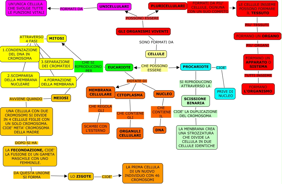 Questa Cmap, creata con IHMC CmapTools, contiene informazioni relative a: LE CELLULE PROCARIOTE, EUCARIOTE E GLI ORGANISMI, MITOSI ATTRAVERSO 4 FASI 2.SCOMPARSA DELLA MEMBRANA NUCLEARE, EUCARIOTE DOTATE DI CITOPLASMA, EUCARIOTE CHE SI RIPRODUCONO PER MEIOSI, CELLULE CHE POSSONO ESSERE PROCARIOTE, FORMANO UN ORGANO PIU' ORGANI FORMANO UN APPARATO O SISTEMA, MITOSI ATTRAVERSO 4 FASI 4.FORMAZIONE DELLA MEMBRANA, MEMBRANA CELLULARE CHE REGOLA GLI SCAMBI CON L'ESTERNO, FORMANO UN APPARATO O SISTEMA TUTTI INSIEME FORMANO L'ORGANISMO, MITOSI ATTRAVERSO 4 FASI 3.SEPARAZIONE DEI CROMATIDI, PLURICELLULARI FORMATI DA PIU' CELLULE, OGNUNA CON UN SUO COMPITO LE CELLULE INSIEME POSSONO FORMARE IL TESSUTO, LA FECONDAZIONE, CIOE' LA FUSIONE DI UN GAMETA MASCHILE CON UNO FEMMINILE. DA QUESTA UNIONE SI FORMA LO ZIGOTE, EUCARIOTE CHE SI RIPRODUCONO PER MITOSI, MITOSI ATTRAVERSO 4 FASI 1.CONDENZAZIONE DEL DNA IN CROMOSOMA, GLI ORGANISMI VIVENTI SONO FORMATI DA CELLULE, UNA CELLULA CON DUE CROMOSOMI SI DIVIDE IN 4 CELLULE FIGLIE CON UN SOLO CROMOSOMA. CIOE' META' CROMOSOMA DELLA MADRE DOPO SI HA LA FECONDAZIONE, CIOE' LA FUSIONE DI UN GAMETA MASCHILE CON UNO FEMMINILE., CITOPLASMA CHE CONTIENE GLI ORGANULI CELLULARI, UNICELLULARI FORMATI DA UN'UNICA CELLULA CHE SVOLGE TUTTE LE FUNZIONI VITALI, NUCLEO CHE CONTIENE IL DNA, GLI ORGANISMI VIVENTI POSSONO ESSERE UNICELLULARI, LO ZIGOTE CIOE' LA PRIMA CELLULA DI UN NUOVO INDIVIDUO CON 46 CROMOSOMI