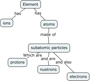This Concept Map, created with IHMC CmapTools, has information related to: Basic matter structure BY Cody David, subatomic particles and also electrons, subatomic particles and are nuetrons, Element has ions, Element has atoms, subatomic particles Which are protons, atoms made of subatomic particles