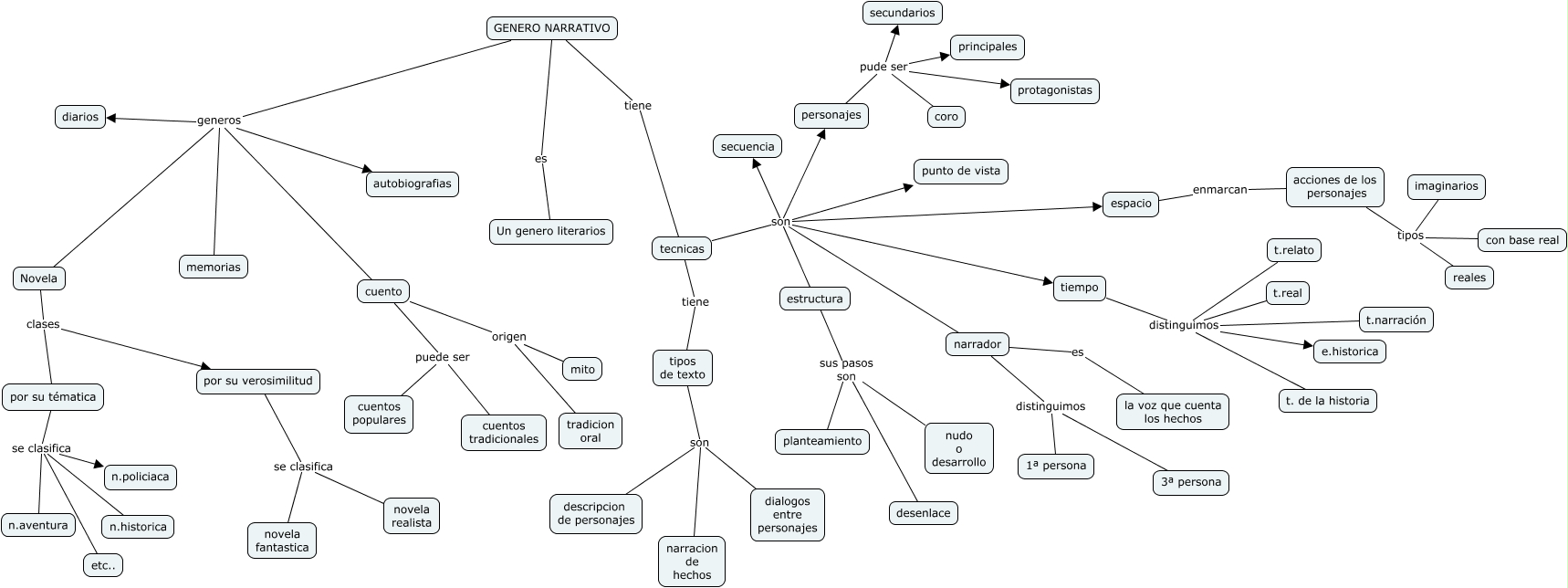 Este Cmap, tiene información relacionada con: MATEO BERMUDEZ CANO, tecnicas son estructura, por su tématica se clasifica n.policiaca, tecnicas son personajes, tiempo distinguimos t.real, narrador es la voz que cuenta los hechos, cuento puede ser cuentos populares, por su verosimilitud se clasifica novela fantastica, estructura sus pasos son desenlace, personajes pude ser principales, acciones de los personajes tipos con base real, Novela clases por su verosimilitud, estructura sus pasos son nudo o desarrollo, Novela clases por su tématica, por su tématica se clasifica n.historica, GENERO NARRATIVO generos cuento, tiempo distinguimos e.historica, tecnicas son punto de vista, GENERO NARRATIVO tiene tecnicas, acciones de los personajes tipos imaginarios, cuento origen mito