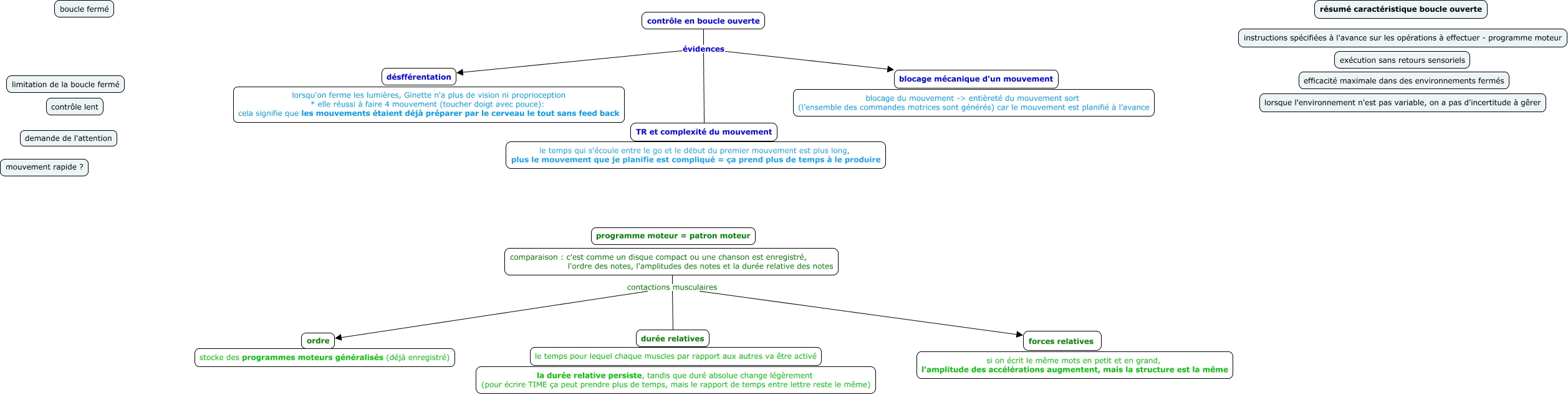 Cette carte de concepts créée avec IHMC CmapTools traite de: contrôle en boucle ouverte et programme moteur, contrôle en boucle ouverte évidences TR et complexité du mouvement, contrôle en boucle ouverte évidences désfférentation, comparaison : c'est comme un disque compact ou une chanson est enregistré, l'ordre des notes, l'amplitudes des notes et la durée relative des notes contactions musculaires ordre, comparaison : c'est comme un disque compact ou une chanson est enregistré, l'ordre des notes, l'amplitudes des notes et la durée relative des notes contactions musculaires durée relatives, contrôle en boucle ouverte évidences blocage mécanique d'un mouvement, comparaison : c'est comme un disque compact ou une chanson est enregistré, l'ordre des notes, l'amplitudes des notes et la durée relative des notes contactions musculaires forces relatives