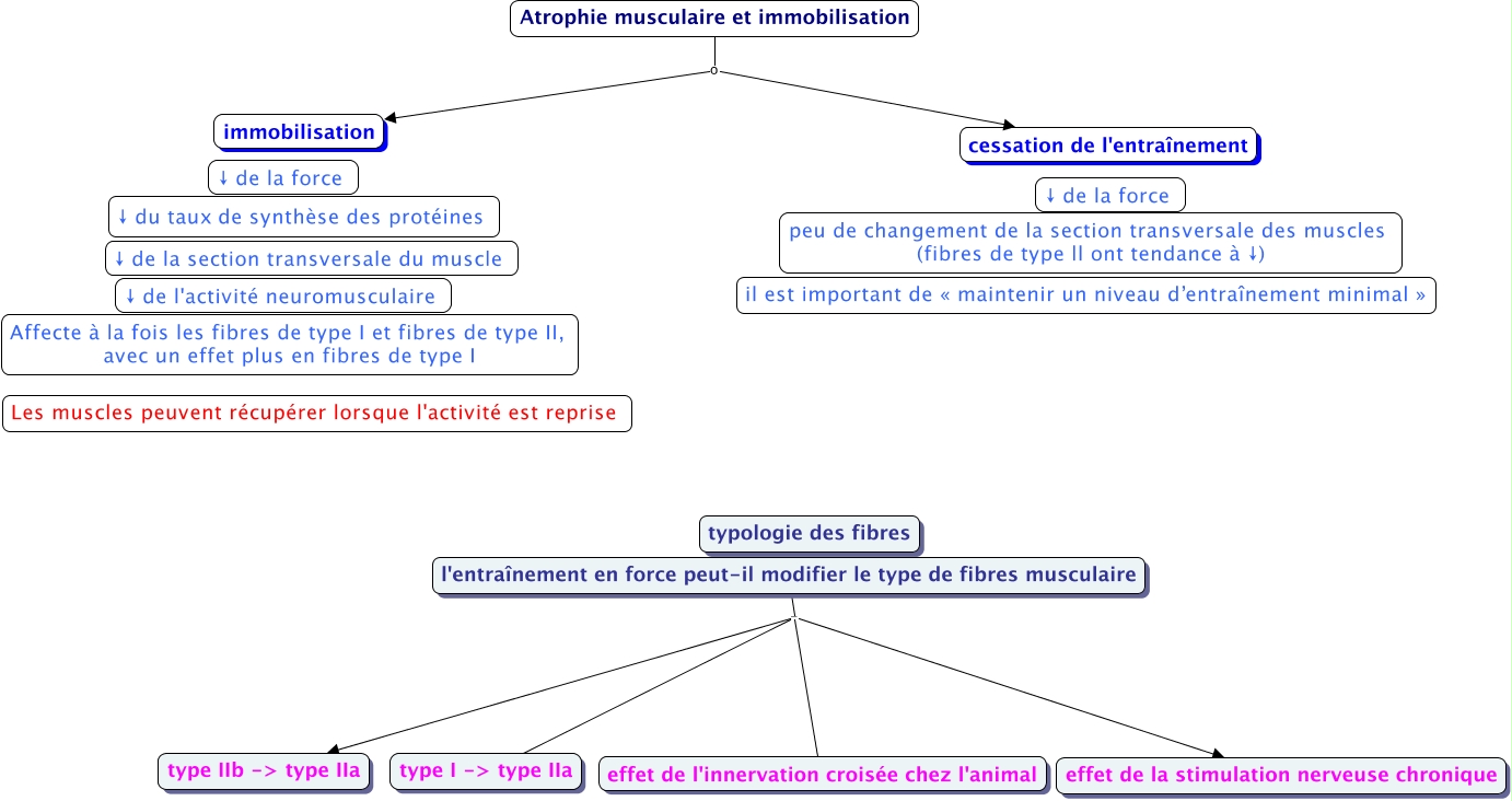 Cette carte de concepts créée avec IHMC CmapTools traite de: atrophie musculaire, typologie des fibres, l'entraînement en force peut-il modifier le type de fibres musculaire - type I -> type IIa, l'entraînement en force peut-il modifier le type de fibres musculaire - type IIb -> type IIa, Atrophie musculaire et immobilisation o immobilisation, l'entraînement en force peut-il modifier le type de fibres musculaire - effet de la stimulation nerveuse chronique, Atrophie musculaire et immobilisation o cessation de l'entraînement, l'entraînement en force peut-il modifier le type de fibres musculaire - effet de l'innervation croisée chez l'animal
