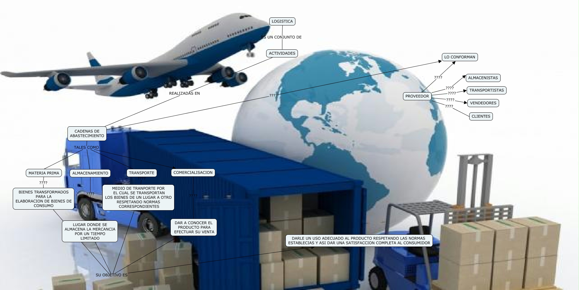 Este Cmap, tiene información relacionada con: LOGISTICA, COMERCIALISACION ???? DAR A CONOCER EL PRODUCTO PARA EFECTUAR SU VENTA, TRANSPORTE ???? MEDIO DE TRANPORTE POR EL CUAL SE TRANSPORTAN LOS BIENES DE UN LUGAR A OTRO RESPETANDO NORMAS CORRESPONDIENTES, CADENAS DE ABASTECIMIENTO TALES COMO ALMACENAMIENTO, LOGISTICA ES UN CONJUNTO DE ACTIVIDADES, ALMACENAMIENTO ???? LUGAR DONDE SE ALMACENA LA MERCANCIA POR UN TIEMPO LIMITADO, CADENAS DE ABASTECIMIENTO TALES COMO MATERIA PRIMA, PROVEEDOR ???? CLIENTES, CADENAS DE ABASTECIMIENTO TALES COMO TRANSPORTE, ACTIVIDADES REALIZADAS EN CADENAS DE ABASTECIMIENTO, DAR A CONOCER EL PRODUCTO PARA EFECTUAR SU VENTA SU OBJETIVO ES DARLE UN USO ADECUADO AL PRODUCTO RESPETANDO LAS NORMAS ESTABLECIAS Y ASI DAR UNA SATISFACCION COMPLETA AL CONSUMIDOR, BIENES TRANSFORMADOS PARA LA ELABORACION DE BIENES DE CONSUMO SU OBJETIVO ES DARLE UN USO ADECUADO AL PRODUCTO RESPETANDO LAS NORMAS ESTABLECIAS Y ASI DAR UNA SATISFACCION COMPLETA AL CONSUMIDOR, PROVEEDOR ???? ALMACENISTAS, LUGAR DONDE SE ALMACENA LA MERCANCIA POR UN TIEMPO LIMITADO SU OBJETIVO ES DARLE UN USO ADECUADO AL PRODUCTO RESPETANDO LAS NORMAS ESTABLECIAS Y ASI DAR UNA SATISFACCION COMPLETA AL CONSUMIDOR, CADENAS DE ABASTECIMIENTO ???? LO CONFORMAN, MEDIO DE TRANPORTE POR EL CUAL SE TRANSPORTAN LOS BIENES DE UN LUGAR A OTRO RESPETANDO NORMAS CORRESPONDIENTES SU OBJETIVO ES DARLE UN USO ADECUADO AL PRODUCTO RESPETANDO LAS NORMAS ESTABLECIAS Y ASI DAR UNA SATISFACCION COMPLETA AL CONSUMIDOR, MATERIA PRIMA ???? BIENES TRANSFORMADOS PARA LA ELABORACION DE BIENES DE CONSUMO, PROVEEDOR ???? TRANSPORTISTAS, CADENAS DE ABASTECIMIENTO TALES COMO COMERCIALISACION, PROVEEDOR ???? LO CONFORMAN, PROVEEDOR ???? VENDEDORES