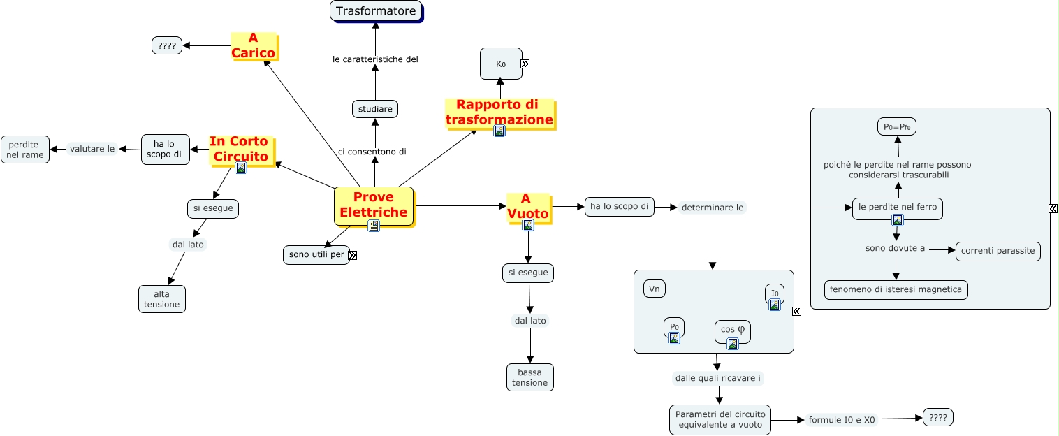 Questa Cmap, creata con IHMC CmapTools, contiene informazioni relative a: prova vuoto 2, si esegue dal lato bassa tensione, Prove Elettriche A Carico ????, Prove Elettriche A Vuoto si esegue, Prove Elettriche sono utili per valutare, studiare le caratteristiche del Trasformatore, Prove Elettriche In Corto Circuito ha lo scopo di, eseguito tramite Metodo dei due voltmetri, Prove Elettriche A Vuoto ha lo scopo di, le perdite nel ferro sono dovute a fenomeno di isteresi magnetica, ha lo scopo di determinare le grandezze elettriche a vuoto, grandezze elettriche a vuoto dalle quali ricavare i Parametri del circuito equivalente a vuoto, Parametri del circuito equivalente a vuoto formule I0 e X0 ????, Prove Elettriche Rapporto di trasformazione, ha lo scopo di valutare le perdite nel rame, Prove Elettriche sono utili per verificare, le perdite nel ferro sono dovute a correnti parassite, Prove Elettriche In Corto Circuito si esegue, Prove Elettriche ci consentono di studiare, valutare i parametri caratteristici della macchina che concorrono, le perdite nel ferro poichè le perdite nel rame possono considerarsi trascurabili P0=Pfe