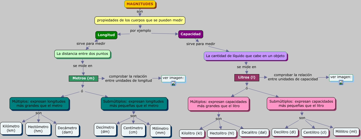 Este Cmap, tiene información relacionada con: mapa1, Múltiplos: expresan capacidades más grandes que el litro son Hectolitro (hl), Múltiplos: expresan longitudes más grandes que el metro son Hectómetro (hm), Longitud sirve para medir La distancia entre dos puntos, Submúltiplos: expresan capacidades más pequeñas que el litro son Decilitro (dl), Litros (l) ó Submúltiplos: expresan capacidades más pequeñas que el litro, Múltiplos: expresan longitudes más grandes que el metro son Decámetro (dam), Submúltiplos: expresan longitudes más pequeñas que el metro son Decímetro (dm), Submúltiplos: expresan longitudes más pequeñas que el metro son Milímetro (mm), Metros (m) ó Submúltiplos: expresan longitudes más pequeñas que el metro, Múltiplos: expresan capacidades más grandes que el litro son Decalitro (dal), Submúltiplos: expresan capacidades más pequeñas que el litro son Centilitro (cl), La cantidad de líquido que cabe en un objeto se mide en Litros (l), Metros (m) ó Múltiplos: expresan longitudes más grandes que el metro, Capacidad sirve para medir La cantidad de líquido que cabe en un objeto, propiedades de los cuerpos que se pueden medir por ejemplo Capacidad, Múltiplos: expresan capacidades más grandes que el litro son Kilolitro (kl), Múltiplos: expresan longitudes más grandes que el metro son Kilómetro (km), MAGNITUDES son propiedades de los cuerpos que se pueden medir, Submúltiplos: expresan longitudes más pequeñas que el metro son Centímetro (cm), La distancia entre dos puntos se mide en Metros (m)