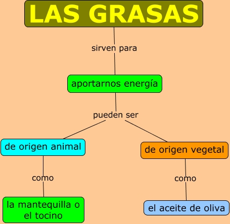 Este Cmap, tiene información relacionada con: Las grasas, LAS GRASAS sirven para aportarnos energía, de origen vegetal como el aceite de oliva, aportarnos energía pueden ser de origen animal, de origen animal como la mantequilla o el tocino, aportarnos energía pueden ser de origen vegetal