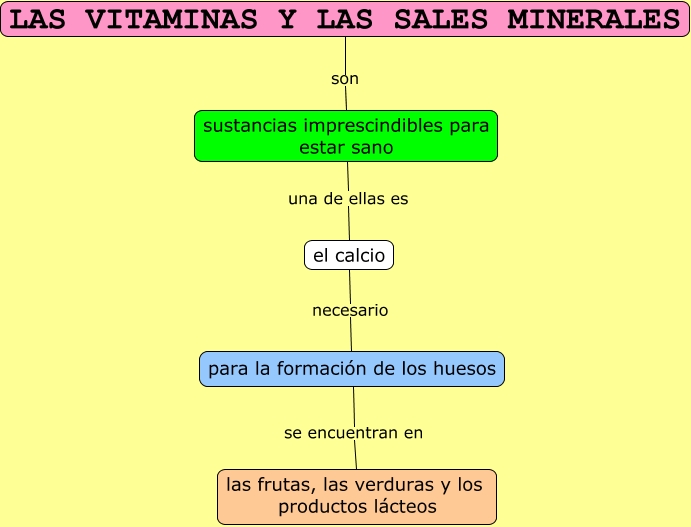 Este Cmap, tiene información relacionada con: Las vitaminas y las sales minerales, para la formación de los huesos se encuentran en las frutas, las verduras y los productos lácteos, el calcio necesario para la formación de los huesos, LAS VITAMINAS Y LAS SALES MINERALES son sustancias imprescindibles para estar sano, sustancias imprescindibles para estar sano una de ellas es el calcio