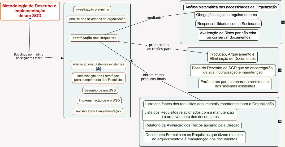 Esse mapa conceitual, produzido no IHMC CmapTools, tem a informação relacionada a: Norma ISO - METODOLOGIA - 03, Identificação dos Requisitos proporciona as razões para Produção, Arquivamento e Eliminação de Documentos, Identificação dos Requisitos obtem como produtos finais Lista das fontes dos requisitos documentais importantes para a Organização, Identificação dos Requisitos mediante Análise sistemática das necessidades da Organização