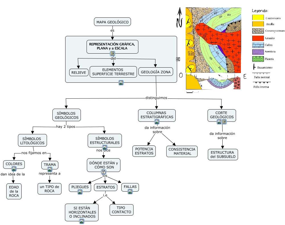 Este Cmap, tiene información relacionada con: 9 Mapa geológico, DÓNDE ESTÁN y CÓMO SON los ESTRATOS, TRAMA representa a un TIPO de ROCA, ESTRATOS i.e SI ESTÁN HORIZONTALES O INCLINADOS, COLUMNAS ESTRATIGRÁFICAS da información sobre CONSISTENCIA MATERIAL, COLORES dan idea de la EDAD de la ROCA, GEOLOGÍA ZONA distinguimos CORTE GEOLÓGICOS, SÍMBOLOS ESTRUCTURALES nos dice DÓNDE ESTÁN y CÓMO SON, MAPA GEOLÓGICO es REPRESENTACIÓN GRÁFICA, PLANA y a ESCALA, GEOLOGÍA ZONA distinguimos COLUMNAS ESTRATIGRÁFICAS, DÓNDE ESTÁN y CÓMO SON los PLIEGUES, SÍMBOLOS GEOLÓGICOS hay 2 tipos SÍMBOLOS LITOLÓGICOS, DÓNDE ESTÁN y CÓMO SON los FALLAS, REPRESENTACIÓN GRÁFICA, PLANA y a ESCALA del RELIEVE, REPRESENTACIÓN GRÁFICA, PLANA y a ESCALA del GEOLOGÍA ZONA, SÍMBOLOS LITOLÓGICOS nos fijamos en COLORES, REPRESENTACIÓN GRÁFICA, PLANA y a ESCALA del ELEMENTOS SUPERFICIE TERRESTRE, SÍMBOLOS GEOLÓGICOS hay 2 tipos SÍMBOLOS ESTRUCTURALES, CORTE GEOLÓGICOS da información sobre ESTRUCTURA del SUBSUELO, ESTRATOS i.e TIPO CONTACTO, COLUMNAS ESTRATIGRÁFICAS da información sobre POTENCIA ESTRATOS