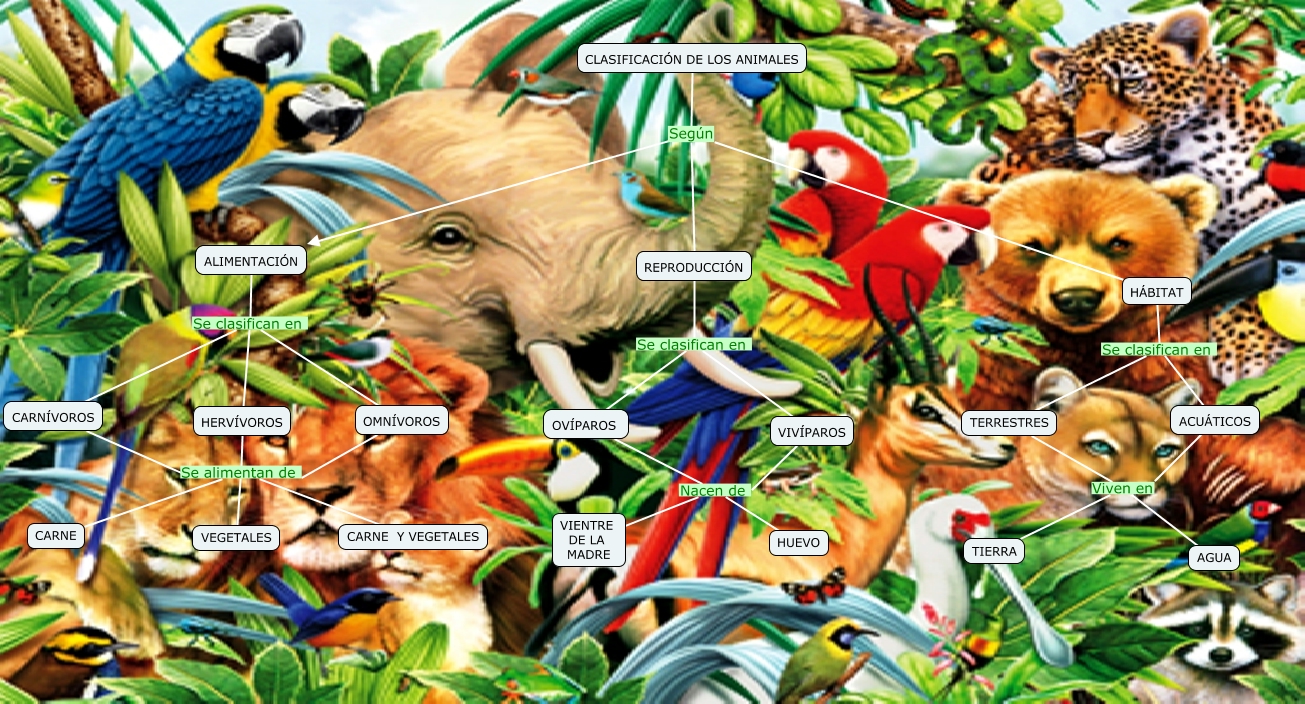 Este Cmap, tiene información relacionada con: CLASIF ANIMAL, HERVÍVOROS Se alimentan de CARNE, ALIMENTACIÓN Se clasifican en OMNÍVOROS, ACUÁTICOS Viven en AGUA, HERVÍVOROS Se alimentan de CARNE Y VEGETALES, VIVÍPAROS Nacen de VIENTRE DE LA MADRE, CARNÍVOROS Se alimentan de VEGETALES, ACUÁTICOS Viven en TIERRA, REPRODUCCIÓN Se clasifican en VIVÍPAROS, TERRESTRES Viven en TIERRA, OMNÍVOROS Se alimentan de CARNE Y VEGETALES, ALIMENTACIÓN Se clasifican en CARNÍVOROS, HERVÍVOROS Se alimentan de VEGETALES, REPRODUCCIÓN Se clasifican en OVÍPAROS, ALIMENTACIÓN Se clasifican en HERVÍVOROS, OMNÍVOROS Se alimentan de VEGETALES, CLASIFICACIÓN DE LOS ANIMALES Según HÁBITAT, CARNÍVOROS Se alimentan de CARNE, OMNÍVOROS Se alimentan de CARNE, OVÍPAROS Nacen de HUEVO, CLASIFICACIÓN DE LOS ANIMALES Según ALIMENTACIÓN