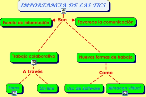 Este Cmap, tiene información relacionada con: Las Tics, IMPORTANCIA DE LAS TICS Son Fuente de informaciòn, IMPORTANCIA DE LAS TICS Son Trabajo colaborativo, IMPORTANCIA DE LAS TICS Son Nuevas formas de trabajo, Nuevas formas de trabajo Como Uso de Software, Trabajo colaborativo A través On line, Nuevas formas de trabajo Como Almacen virtual, Trabajo colaborativo A través Foros, IMPORTANCIA DE LAS TICS Son Favorece la comunicaciòn