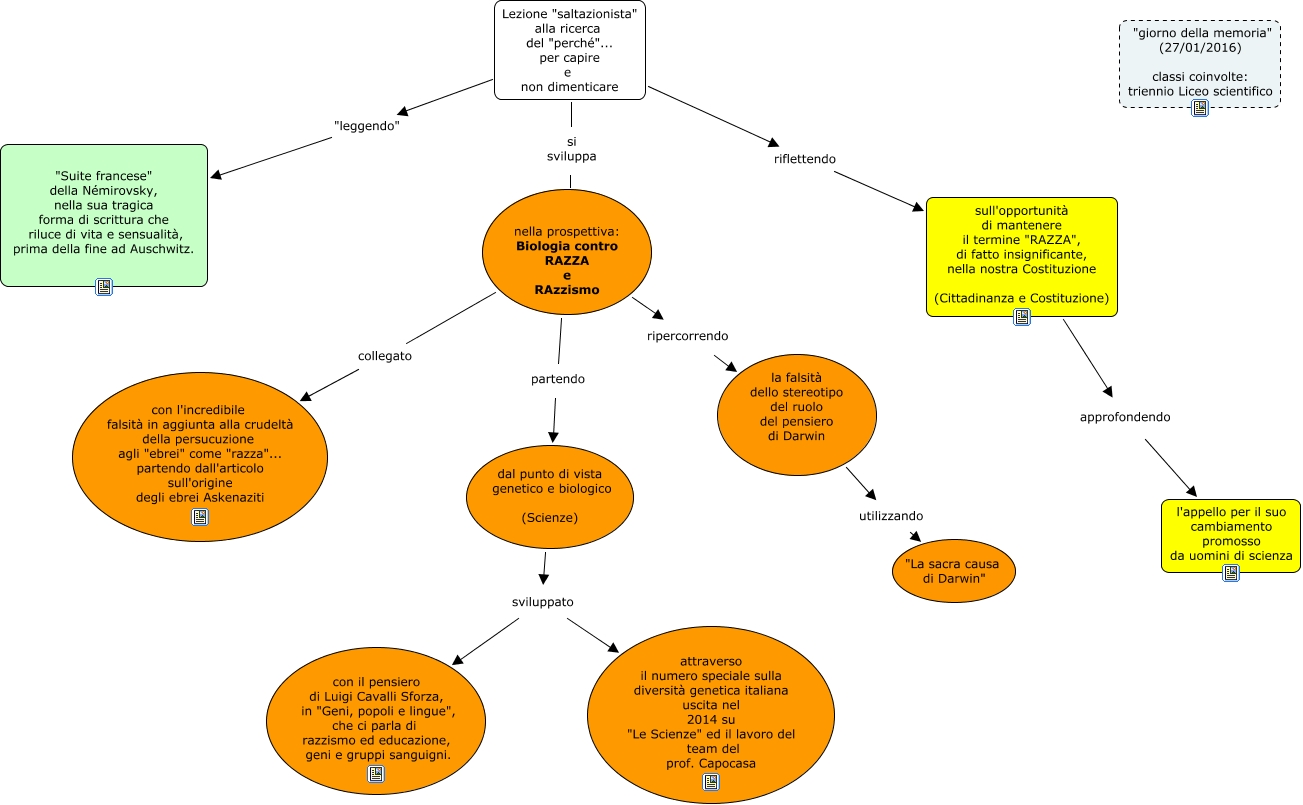 Questa Cmap, creata con IHMC CmapTools, contiene informazioni relative a: memoria saltazionista, nella prospettiva: Biologia contro RAZZA e RAzzismo ripercorrendo la falsità dello stereotipo del ruolo del pensiero di Darwin, la falsità dello stereotipo del ruolo del pensiero di Darwin utilizzando "La sacra causa di Darwin", Lezione "saltazionista" alla ricerca del "perché"... per capire e non dimenticare riflettendo sull'opportunità di mantenere il termine "RAZZA", di fatto insignificante, nella nostra Costituzione (Cittadinanza e Costituzione), Lezione "saltazionista" alla ricerca del "perché"... per capire e non dimenticare si sviluppa nella prospettiva: Biologia contro RAZZA e RAzzismo, nella prospettiva: Biologia contro RAZZA e RAzzismo collegato con l'incredibile falsità in aggiunta alla crudeltà della persucuzione agli "ebrei" come "razza"... partendo dall'articolo sull'origine degli ebrei Askenaziti, dal punto di vista genetico e biologico (Scienze) sviluppato con il pensiero di Luigi Cavalli Sforza, in "Geni, popoli e lingue", che ci parla di razzismo ed educazione, geni e gruppi sanguigni., sull'opportunità di mantenere il termine "RAZZA", di fatto insignificante, nella nostra Costituzione (Cittadinanza e Costituzione) approfondendo l'appello per il suo cambiamento promosso da uomini di scienza, dal punto di vista genetico e biologico (Scienze) sviluppato attraverso il numero speciale sulla diversità genetica italiana uscita nel 2014 su "Le Scienze" ed il lavoro del team del prof. Capocasa, Lezione "saltazionista" alla ricerca del "perché"... per capire e non dimenticare "leggendo" "Suite francese" della Némirovsky, nella sua tragica forma di scrittura che riluce di vita e sensualità, prima della fine ad Auschwitz., nella prospettiva: Biologia contro RAZZA e RAzzismo partendo dal punto di vista genetico e biologico (Scienze)