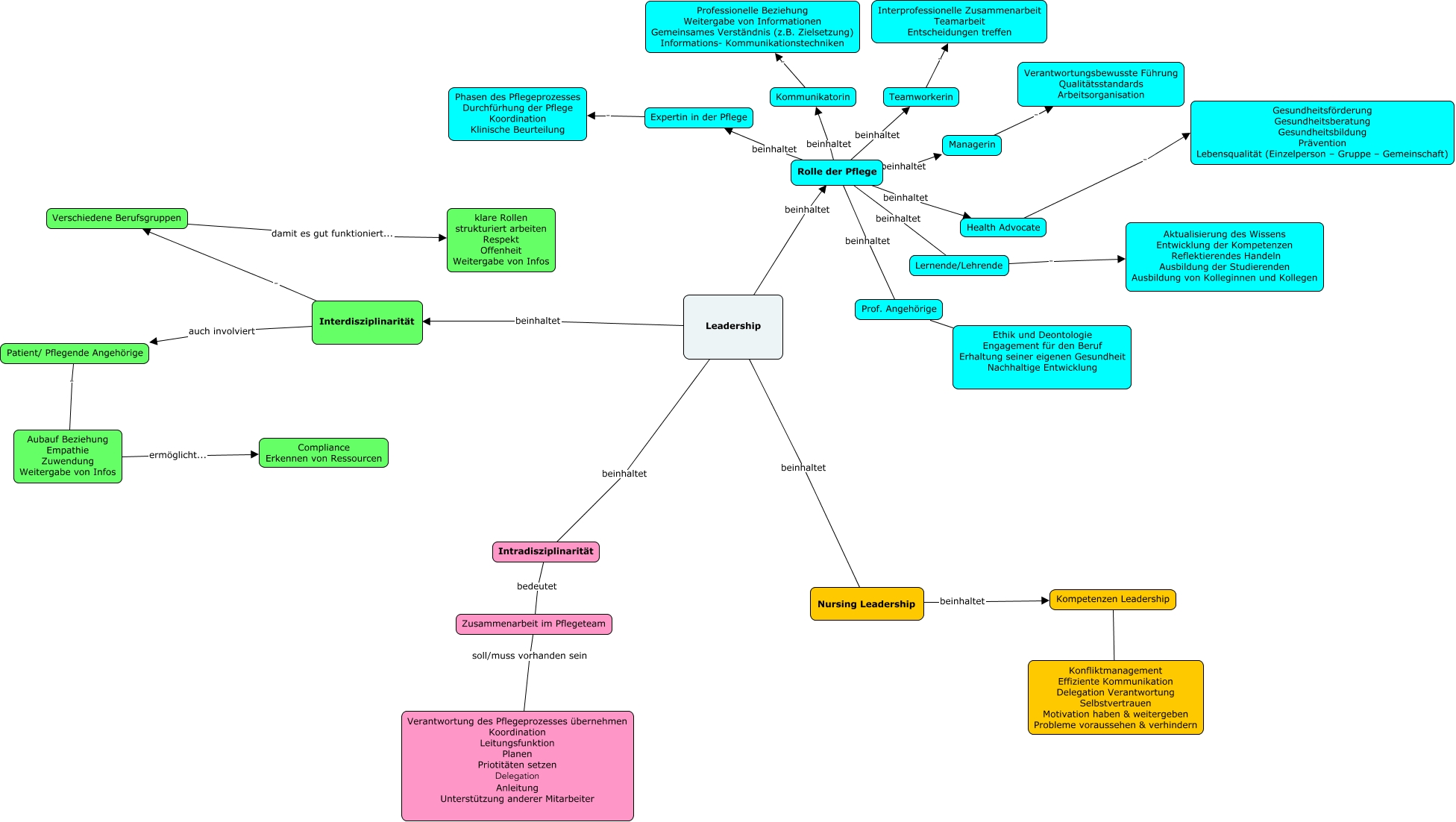 Dieses mit IHMC CmapTools erstellte CMap hat Informationen bezüglich: M17, Patient/ Pflegende Angehörige . Aubauf Beziehung Empathie Zuwendung Weitergabe von Infos, Leadership beinhaltet Interdisziplinarität, Interdisziplinarität . Verschiedene Berufsgruppen, Rolle der Pflege beinhaltet Kommunikatorin, Nursing Leadership beinhaltet Kompetenzen Leadership, Expertin in der Pflege . Phasen des Pflegeprozesses Durchfürhung der Pflege Koordination Klinische Beurteilung, Prof. Angehörige ???? Ethik und Deontologie Engagement für den Beruf Erhaltung seiner eigenen Gesundheit Nachhaltige Entwicklung, Managerin . Verantwortungsbewusste Führung Qualitätsstandards Arbeitsorganisation, Aubauf Beziehung Empathie Zuwendung Weitergabe von Infos ermöglicht... Compliance Erkennen von Ressourcen, Leadership beinhaltet Intradisziplinarität, Rolle der Pflege beinhaltet Lernende/Lehrende, Rolle der Pflege beinhaltet Expertin in der Pflege, Leadership beinhaltet Rolle der Pflege, Verschiedene Berufsgruppen damit es gut funktioniert... klare Rollen strukturiert arbeiten Respekt Offenheit Weitergabe von Infos, Rolle der Pflege beinhaltet Prof. Angehörige, Health Advocate . Gesundheitsförderung Gesundheitsberatung Gesundheitsbildung Prävention Lebensqualität (Einzelperson – Gruppe – Gemeinschaft), Kommunikatorin . Professionelle Beziehung Weitergabe von Informationen Gemeinsames Verständnis (z.B. Zielsetzung) Informations- Kommunikationstechniken, Leadership beinhaltet Nursing Leadership, Rolle der Pflege beinhaltet Teamworkerin, Lernende/Lehrende . Aktualisierung des Wissens Entwicklung der Kompetenzen Reflektierendes Handeln Ausbildung der Studierenden Ausbildung von Kolleginnen und Kollegen