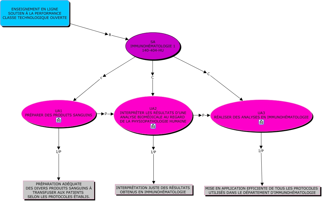 Cette carte de concepts créée avec IHMC CmapTools traite de: SA, UA1 PRÉPARER DES PRODUITS SANGUINS p UA2 INTERPRÉTER LES RÉSULTATS D'UNE ANALYSE BIOMÉDICALE AU REGARD DE LA PHYSIOPATHOLOGIE HUMAINE, SA IMMUNOHÉMATOLOGIE 1 140-404-HU C UA3 RÉALISER DES ANALYSES EN IMMUNOHÉMATOLOGIE, UA3 RÉALISER DES ANALYSES EN IMMUNOHÉMATOLOGIE I/P MISE EN APPLICATION EFFICIENTE DE TOUS LES PROTOCOLES UTILISÉS DANS LE DÉPARTEMENT D'IMMUNOHÉMATOLOGIE, SA IMMUNOHÉMATOLOGIE 1 140-404-HU C UA2 INTERPRÉTER LES RÉSULTATS D'UNE ANALYSE BIOMÉDICALE AU REGARD DE LA PHYSIOPATHOLOGIE HUMAINE, UA1 PRÉPARER DES PRODUITS SANGUINS I/P PRÉPARATION ADÉQUATE DES DIVERS PRODUITS SANGUINS À TRANSFUSER AUX PATIENTS SELON LES PROTOCOLES ÉTABLIS., ENSEIGNEMENT EN LIGNE SOUTIEN À LA PERFORMANCE CLASSE TECHNOLOGIQUE OUVERTE R SA IMMUNOHÉMATOLOGIE 1 140-404-HU, SA IMMUNOHÉMATOLOGIE 1 140-404-HU c UA1 PRÉPARER DES PRODUITS SANGUINS, UA2 INTERPRÉTER LES RÉSULTATS D'UNE ANALYSE BIOMÉDICALE AU REGARD DE LA PHYSIOPATHOLOGIE HUMAINE p UA3 RÉALISER DES ANALYSES EN IMMUNOHÉMATOLOGIE, UA2 INTERPRÉTER LES RÉSULTATS D'UNE ANALYSE BIOMÉDICALE AU REGARD DE LA PHYSIOPATHOLOGIE HUMAINE I/P INTERPRÉTATION JUSTE DES RÉSULTATS OBTENUS EN IMMUNOHÉMATOLOGIE