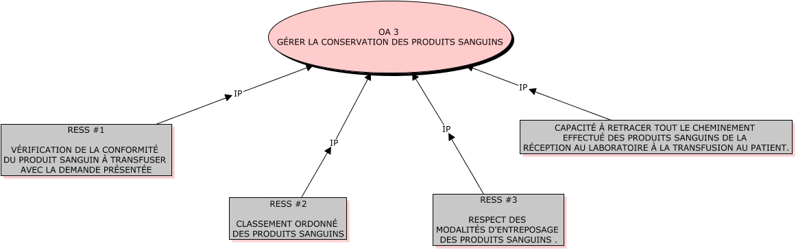 Cette carte de concepts créée avec IHMC CmapTools traite de: OA3-UI, RESS #1 VÉRIFICATION DE LA CONFORMITÉ DU PRODUIT SANGUIN À TRANSFUSER AVEC LA DEMANDE PRÉSENTÉE IP OA 3 GÉRER LA CONSERVATION DES PRODUITS SANGUINS, RESS #3 RESPECT DES MODALITÉS D'ENTREPOSAGE DES PRODUITS SANGUINS . IP OA 3 GÉRER LA CONSERVATION DES PRODUITS SANGUINS, CAPACITÉ À RETRACER TOUT LE CHEMINEMENT EFFECTUÉ DES PRODUITS SANGUINS DE LA RÉCEPTION AU LABORATOIRE À LA TRANSFUSION AU PATIENT. IP OA 3 GÉRER LA CONSERVATION DES PRODUITS SANGUINS, RESS #2 CLASSEMENT ORDONNÉ DES PRODUITS SANGUINS IP OA 3 GÉRER LA CONSERVATION DES PRODUITS SANGUINS