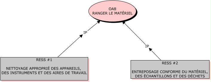 Cette carte de concepts créée avec IHMC CmapTools traite de: OA8-U3, RESS #1 NETTOYAGE APPROPRIÉ DES APPAREILS, DES INSTRUMENTS ET DES AIRES DE TRAVAIL IP OA8 RANGER LE MATÉRIEL, RESS #2 ENTREPOSAGE CONFORME DU MATÉRIEL, DES ÉCHANTILLONS ET DES DÉCHETS IP OA8 RANGER LE MATÉRIEL