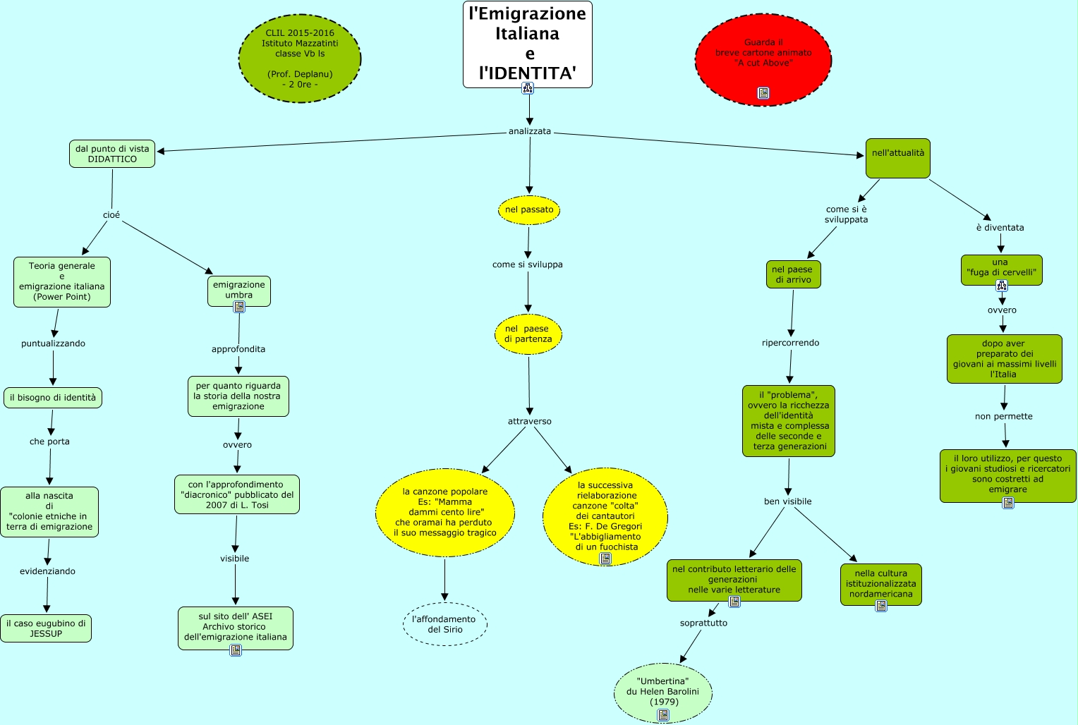 Questa Cmap, creata con IHMC CmapTools, contiene informazioni relative a: emigrazione clil, l'Emigrazione Italiana e l'IDENTITA' analizzata nell'attualità, dal punto di vista DIDATTICO cioé Teoria generale e emigrazione italiana (Power Point), con l'approfondimento "diacronico" pubblicato del 2007 di L. Tosi visibile sul sito dell' ASEI Archivo storico dell'emigrazione italiana, nel paese di partenza attraverso la successiva rielaborazione canzone "colta" dei cantautori Es: F. De Gregori "L'abbigliamento di un fuochista, la canzone popolare Es: "Mamma dammi cento lire" che oramai ha perduto il suo messaggio tragico l'affondamento del Sirio, il "problema", ovvero la ricchezza dell'identità mista e complessa delle seconde e terza generazioni ben visibile nella cultura istituzionalizzata nordamericana, nell'attualità come si è sviluppata nel paese di arrivo, dopo aver preparato dei giovani ai massimi livelli l'Italia non permette il loro utilizzo, per questo i giovani studiosi e ricercatori sono costretti ad emigrare, nel passato come si sviluppa nel paese di partenza, nel paese di arrivo ripercorrendo il "problema", ovvero la ricchezza dell'identità mista e complessa delle seconde e terza generazioni, nel paese di partenza attraverso la canzone popolare Es: "Mamma dammi cento lire" che oramai ha perduto il suo messaggio tragico, nell'attualità è diventata una "fuga di cervelli", alla nascita di "colonie etniche in terra di emigrazione evidenziando il caso eugubino di JESSUP, dal punto di vista DIDATTICO cioé emigrazione umbra, il "problema", ovvero la ricchezza dell'identità mista e complessa delle seconde e terza generazioni ben visibile nel contributo letterario delle generazioni nelle varie letterature, l'Emigrazione Italiana e l'IDENTITA' analizzata dal punto di vista DIDATTICO, emigrazione umbra approfondita per quanto riguarda la storia della nostra emigrazione, per quanto riguarda la storia della nostra emigrazione ovvero con l'approfondimento "diacronico" pubblicato del 2007 di L. Tosi, il bisogno di identità che porta alla nascita di "colonie etniche in terra di emigrazione, Teoria generale e emigrazione italiana (Power Point) puntualizzando il bisogno di identità