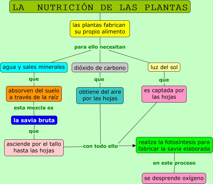 Este Cmap, tiene información relacionada con: La nutrición de las plantas, asciende por el tallo hasta las hojas con todo ello realiza la fotosíntesis para fabricar la savia elaborada, realiza la fotosíntesis para fabricar la savia elaborada en este proceso se desprende oxígeno, obtiene del aire por las hojas con todo ello realiza la fotosíntesis para fabricar la savia elaborada, es captada por las hojas con todo ello realiza la fotosíntesis para fabricar la savia elaborada, las plantas fabrican su propio alimento para ello necesitan luz del sol, LA NUTRICIÓN DE LAS PLANTAS las plantas fabrican su propio alimento, las plantas fabrican su propio alimento para ello necesitan agua y sales minerales, las plantas fabrican su propio alimento para ello necesitan dióxido de carbono, dióxido de carbono que obtiene del aire por las hojas, la savia bruta que asciende por el tallo hasta las hojas, absorven del suelo a través de la raíz esta mezcla es la savia bruta, luz del sol que es captada por las hojas, agua y sales minerales que absorven del suelo a través de la raíz