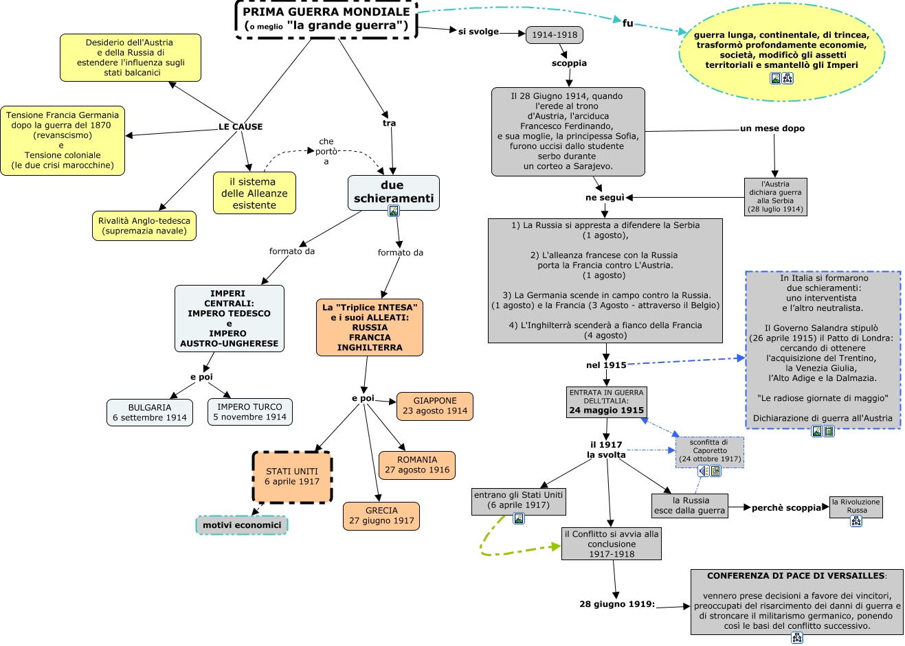 Questa Cmap, creata con IHMC CmapTools, contiene informazioni relative a: prima guerra mondiale, la Russia esce dalla guerra perchè scoppia la Rivoluzione Russa, ENTRATA IN GUERRA DELL’ITALIA: 24 maggio 1915 il 1917 la svolta il Conflitto si avvia alla conclusione 1917-1918, il sistema delle Alleanze esistente che portò a due schieramenti, due schieramenti formato da IMPERI CENTRALI: IMPERO TEDESCO e IMPERO AUSTRO-UNGHERESE, PRIMA GUERRA MONDIALE (o meglio "la grande guerra") fu guerra lunga, continentale, di trincea, trasformò profondamente economie, società, modificò gli assetti territoriali e smantellò gli Imperi, La "Triplice INTESA" e i suoi ALLEATI: RUSSIA FRANCIA INGHILTERRA e poi ROMANIA 27 agosto 1916, sconfitta di Caporetto (24 ottobre 1917) ENTRATA IN GUERRA DELL’ITALIA: 24 maggio 1915, Il 28 Giugno 1914, quando l'erede al trono d'Austria, l'arciduca Francesco Ferdinando, e sua moglie, la principessa Sofia, furono uccisi dallo studente serbo durante un corteo a Sarajevo. ne seguì 1) La Russia si appresta a difendere la Serbia (1 agosto), 2) L'alleanza francese con la Russia porta la Francia contro L'Austria. (1 agosto) 3) La Germania scende in campo contro la Russia. (1 agosto) e la Francia (3 Agosto - attraverso il Belgio) 4) L'Inghilterrà scenderà a fianco della Francia (4 agosto), STATI UNITI 6 aprile 1917 ???? motivi economici, IMPERI CENTRALI: IMPERO TEDESCO e IMPERO AUSTRO-UNGHERESE e poi IMPERO TURCO 5 novembre 1914, PRIMA GUERRA MONDIALE (o meglio "la grande guerra") tra due schieramenti, La "Triplice INTESA" e i suoi ALLEATI: RUSSIA FRANCIA INGHILTERRA e poi GIAPPONE 23 agosto 1914, l'Austria dichiara guerra alla Serbia (28 luglio 1914) ne seguì 1) La Russia si appresta a difendere la Serbia (1 agosto), 2) L'alleanza francese con la Russia porta la Francia contro L'Austria. (1 agosto) 3) La Germania scende in campo contro la Russia. (1 agosto) e la Francia (3 Agosto - attraverso il Belgio) 4) L'Inghilterrà scenderà a fianco della Francia (4 agosto), ENTRATA IN GUERRA DELL’ITALIA: 24 maggio 1915 il 1917 la svolta entrano gli Stati Uniti (6 aprile 1917), PRIMA GUERRA MONDIALE (o meglio "la grande guerra") LE CAUSE Desiderio dell'Austria e della Russia di estendere l'influenza sugli stati balcanici, PRIMA GUERRA MONDIALE (o meglio "la grande guerra") LE CAUSE il sistema delle Alleanze esistente, PRIMA GUERRA MONDIALE (o meglio "la grande guerra") si svolge 1914-1918, ENTRATA IN GUERRA DELL’ITALIA: 24 maggio 1915 il 1917 la svolta sconfitta di Caporetto (24 ottobre 1917), 1) La Russia si appresta a difendere la Serbia (1 agosto), 2) L'alleanza francese con la Russia porta la Francia contro L'Austria. (1 agosto) 3) La Germania scende in campo contro la Russia. (1 agosto) e la Francia (3 Agosto - attraverso il Belgio) 4) L'Inghilterrà scenderà a fianco della Francia (4 agosto) nel 1915 ENTRATA IN GUERRA DELL’ITALIA: 24 maggio 1915, 1914-1918 scoppia Il 28 Giugno 1914, quando l'erede al trono d'Austria, l'arciduca Francesco Ferdinando, e sua moglie, la principessa Sofia, furono uccisi dallo studente serbo durante un corteo a Sarajevo.