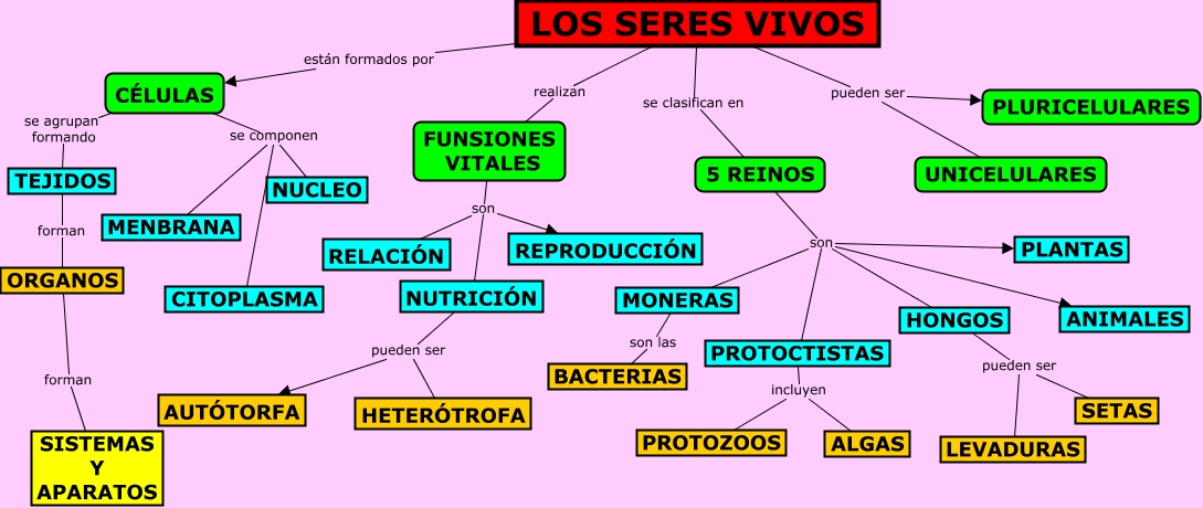 Este Cmap, tiene información relacionada con: LOS SERES VIVOS USMP 1, CÉLULAS se agrupan formando TEJIDOS, LOS SERES VIVOS están formados por CÉLULAS, 5 REINOS son ANIMALES, LOS SERES VIVOS pueden ser UNICELULARES, PROTOCTISTAS incluyen PROTOZOOS, 5 REINOS son PLANTAS, 5 REINOS son HONGOS, CÉLULAS se componen CITOPLASMA, FUNSIONES VITALES son REPRODUCCIÓN, 5 REINOS son MONERAS, CÉLULAS se componen MENBRANA, FUNSIONES VITALES son RELACIÓN, MONERAS son las BACTERIAS, NUTRICIÓN pueden ser AUTÓTORFA, HONGOS pueden ser LEVADURAS, LOS SERES VIVOS pueden ser PLURICELULARES, TEJIDOS forman ORGANOS, NUTRICIÓN pueden ser HETERÓTROFA, PROTOCTISTAS incluyen ALGAS, HONGOS pueden ser SETAS