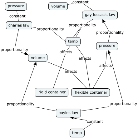 This Concept Map, created with IHMC CmapTools, has information related to: rigid vs flexible, gay lussac's law proportionality temp, temp affects flexible container, temp constant boyles law, volume affects flexible container, temp affects rigid container, boyles law proportionality pressure, pressure proportionality gay lussac's law, gay lussac's law proportionality temp, boyles law proportionality volume, charles law proportionality volume, volume constant gay lussac's law, pressure affects flexible container, pressure constant charles law, charles law proportionality temp
