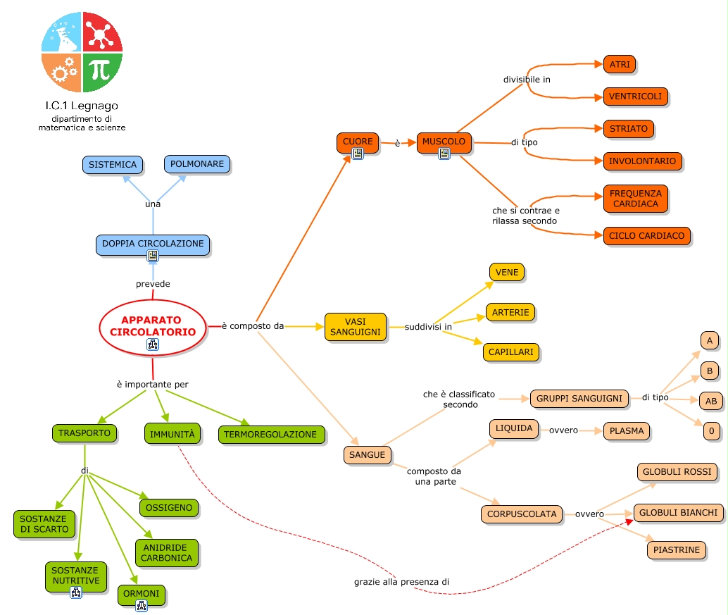 Questa Cmap, creata con IHMC CmapTools, contiene informazioni relative a: apparato circolatorio, CORPUSCOLATA ovvero GLOBULI ROSSI, MUSCOLO che si contrae e rilassa secondo CICLO CARDIACO, MUSCOLO di tipo INVOLONTARIO, APPARATO CIRCOLATORIO è importante per TRASPORTO, CORPUSCOLATA ovvero GLOBULI BIANCHI, IMMUNITÀ grazie alla presenza di GLOBULI BIANCHI, GRUPPI SANGUIGNI di tipo AB, TRASPORTO di ANIDRIDE CARBONICA, VASI SANGUIGNI suddivisi in ARTERIE, MUSCOLO di tipo STRIATO, MUSCOLO che si contrae e rilassa secondo FREQUENZA CARDIACA, TRASPORTO di ORMONI, APPARATO CIRCOLATORIO è composto da CUORE, SANGUE che è classificato secondo GRUPPI SANGUIGNI, SANGUE composto da una parte CORPUSCOLATA, APPARATO CIRCOLATORIO è importante per TERMOREGOLAZIONE, TRASPORTO di SOSTANZE DI SCARTO, GRUPPI SANGUIGNI di tipo A, APPARATO CIRCOLATORIO è composto da VASI SANGUIGNI, GRUPPI SANGUIGNI di tipo 0