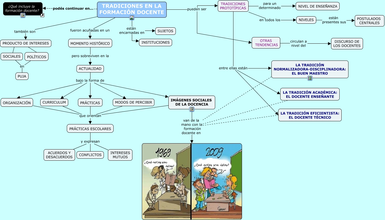 Este Cmap, tiene información relacionada con: LAS TRADICIONES DE LA FORMACIÓN DOCENTE, TRADICIONES EN LA FORMACIÓN DOCENTE pueden ser TRADICIONES PROTOTÍPICAS, IMÁGENES SOCIALES DE LA DOCENCIA van de la mano con la formación docente en LA TRADICIÓN NORMALIZADORA-DISCIPLINADORA: EL BUEN MAESTRO, TRADICIONES EN LA FORMACIÓN DOCENTE pueden ser OTRAS TENDENCIAS, TRADICIONES EN LA FORMACIÓN DOCENTE están encarnadas en INSTITUCIONES, IMÁGENES SOCIALES DE LA DOCENCIA van de la mano con la formación docente en LA TRADICIÓN EFICIENTISTA: EL DOCENTE TÉCNICO, PRÁCTICAS ESCOLARES y expresan INTERESES MUTUOS, MODOS DE PERCIBIR que orientan PRÁCTICAS ESCOLARES, NIVELES están presentes sus POSTULADOS CENTRALES, TRADICIONES PROTOTÍPICAS en todos los NIVELES, PRÁCTICAS que orientan PRÁCTICAS ESCOLARES, ACTUALIDAD bajo la forma de MODOS DE PERCIBIR, ACTUALIDAD bajo la forma de PRÁCTICAS, ACTUALIDAD bajo la forma de CURRICULUM, SOCIALES en PUJA, PRÁCTICAS ESCOLARES y expresan CONFLICTOS, TRADICIONES PROTOTÍPICAS entre ellas están LA TRADICIÓN EFICIENTISTA: EL DOCENTE TÉCNICO, PRÁCTICAS ESCOLARES y expresan ACUERDOS Y DESACUERDOS, ACTUALIDAD bajo la forma de IMÁGENES SOCIALES DE LA DOCENCIA, TRADICIONES EN LA FORMACIÓN DOCENTE podés continuar en... ¿Qué incluye la formación docente?, POLÍTICOS en PUJA