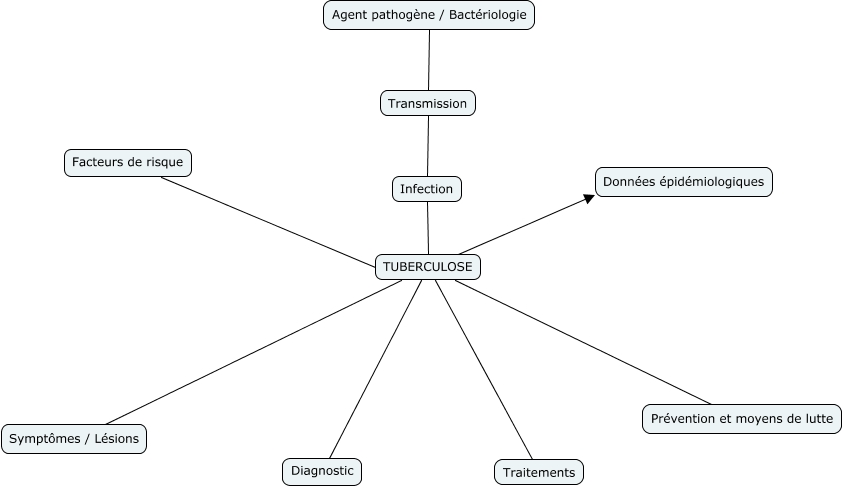 Cette carte de concepts créée avec IHMC CmapTools traite de: Tuberculose brouillon 1, Facteurs de risque TUBERCULOSE, TUBERCULOSE Diagnostic, TUBERCULOSE Symptômes / Lésions, Agent pathogène / Bactériologie Transmission, Infection TUBERCULOSE, TUBERCULOSE Données épidémiologiques, TUBERCULOSE Prévention et moyens de lutte, TUBERCULOSE Traitements, Transmission Infection