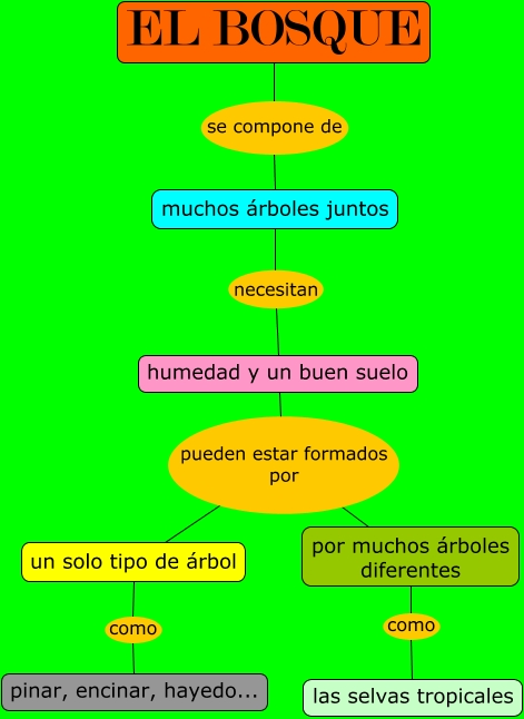 Este Cmap, tiene información relacionada con: El bosque, muchos árboles juntos necesitan humedad y un buen suelo, por muchos árboles diferentes como las selvas tropicales, un solo tipo de árbol como pinar, encinar, hayedo..., EL BOSQUE se compone de muchos árboles juntos, humedad y un buen suelo pueden estar formados por por muchos árboles diferentes, humedad y un buen suelo pueden estar formados por un solo tipo de árbol