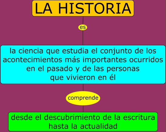 Este Cmap, tiene información relacionada con: La historia, la ciencia que estudia el conjunto de los acontecimientos más importantes ocurridos en el pasado y de las personas que vivieron en él comprende desde el descubrimiento de la escritura hasta la actualidad, LA HISTORIA es la ciencia que estudia el conjunto de los acontecimientos más importantes ocurridos en el pasado y de las personas que vivieron en él