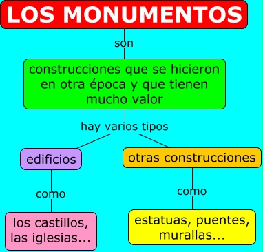 Este Cmap, tiene información relacionada con: Los monumentos, construcciones que se hicieron en otra época y que tienen mucho valor hay varios tipos edificios, edificios como los castillos, las iglesias..., otras construcciones como estatuas, puentes, murallas..., LOS MONUMENTOS son construcciones que se hicieron en otra época y que tienen mucho valor, construcciones que se hicieron en otra época y que tienen mucho valor hay varios tipos otras construcciones